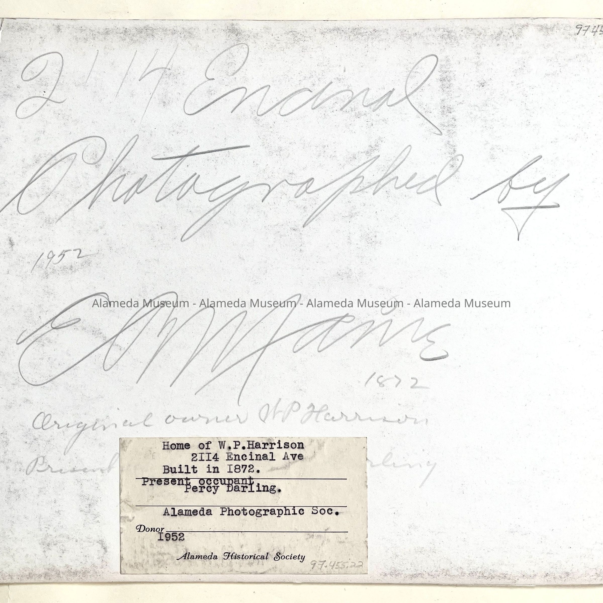 Photo main facade 2114 Encinal Ave, 1952Entry/Object ID