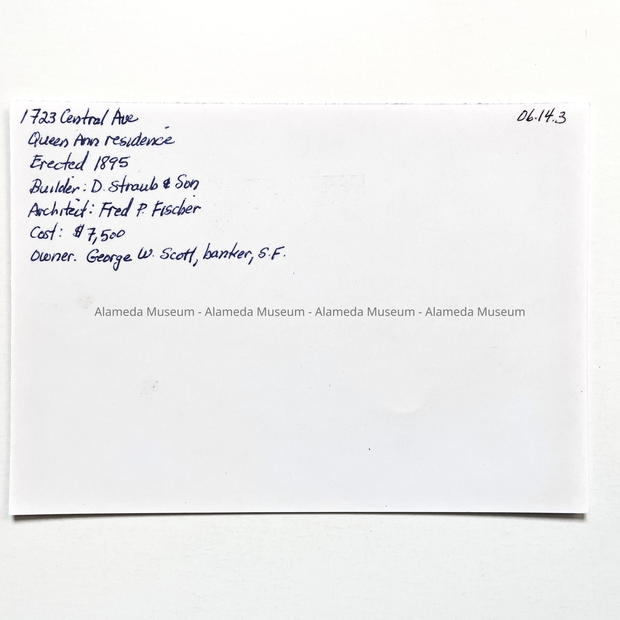 Photograph depicting main facade of 865 Cedar Street, Alameda, erected 1911. Charles H. (chief clerk), & Mary E. Lamb, original owners.