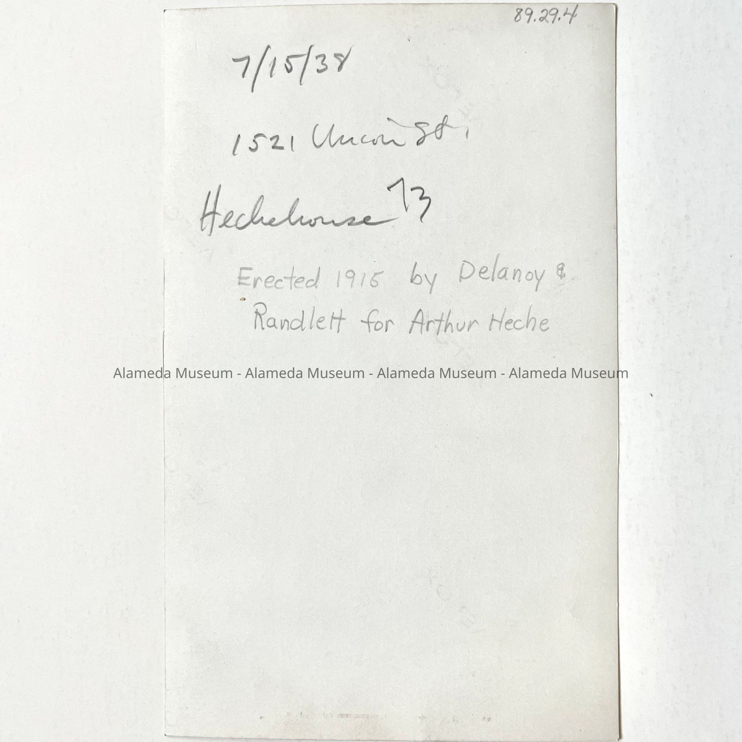 Photo main facade Heche home, 1521 Union Street, 1938Entry/Object ID