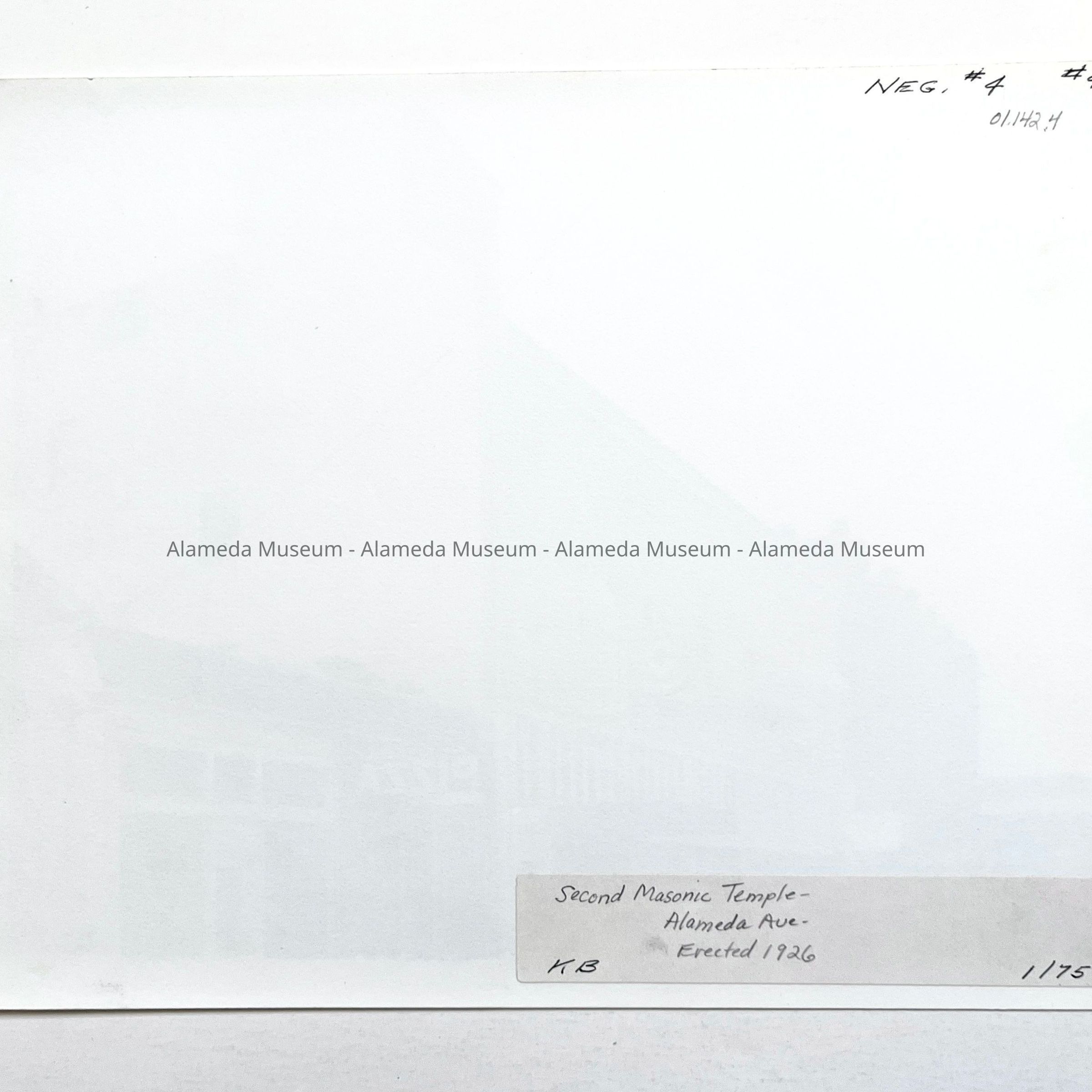 Photograph depicting the main façade of the new Masonic Temple on Alameda Avenue, erected in 1926.