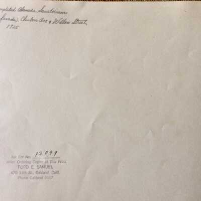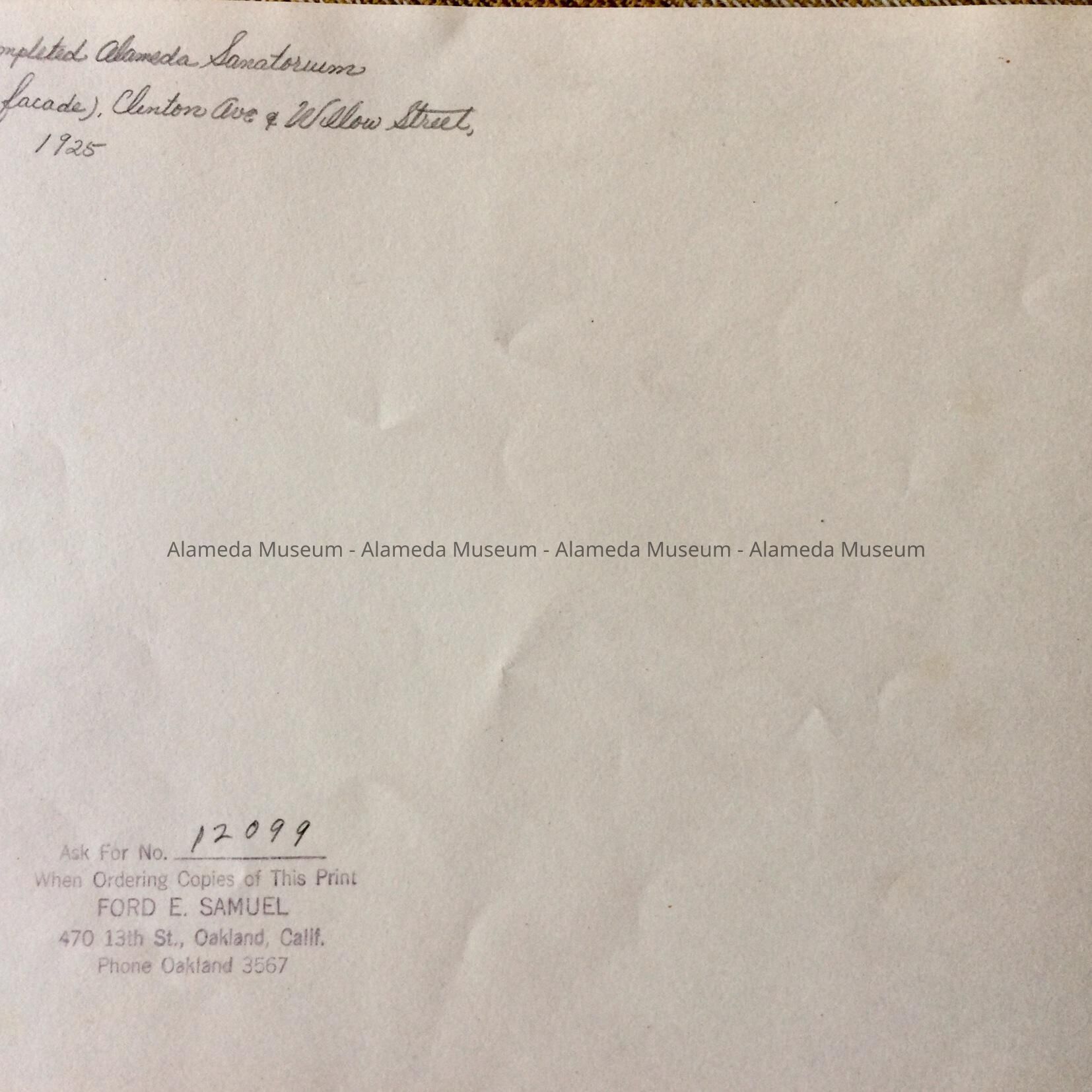Black & white glossy photo, signed on the reverse side "Ford E. Samuel, Oakland."