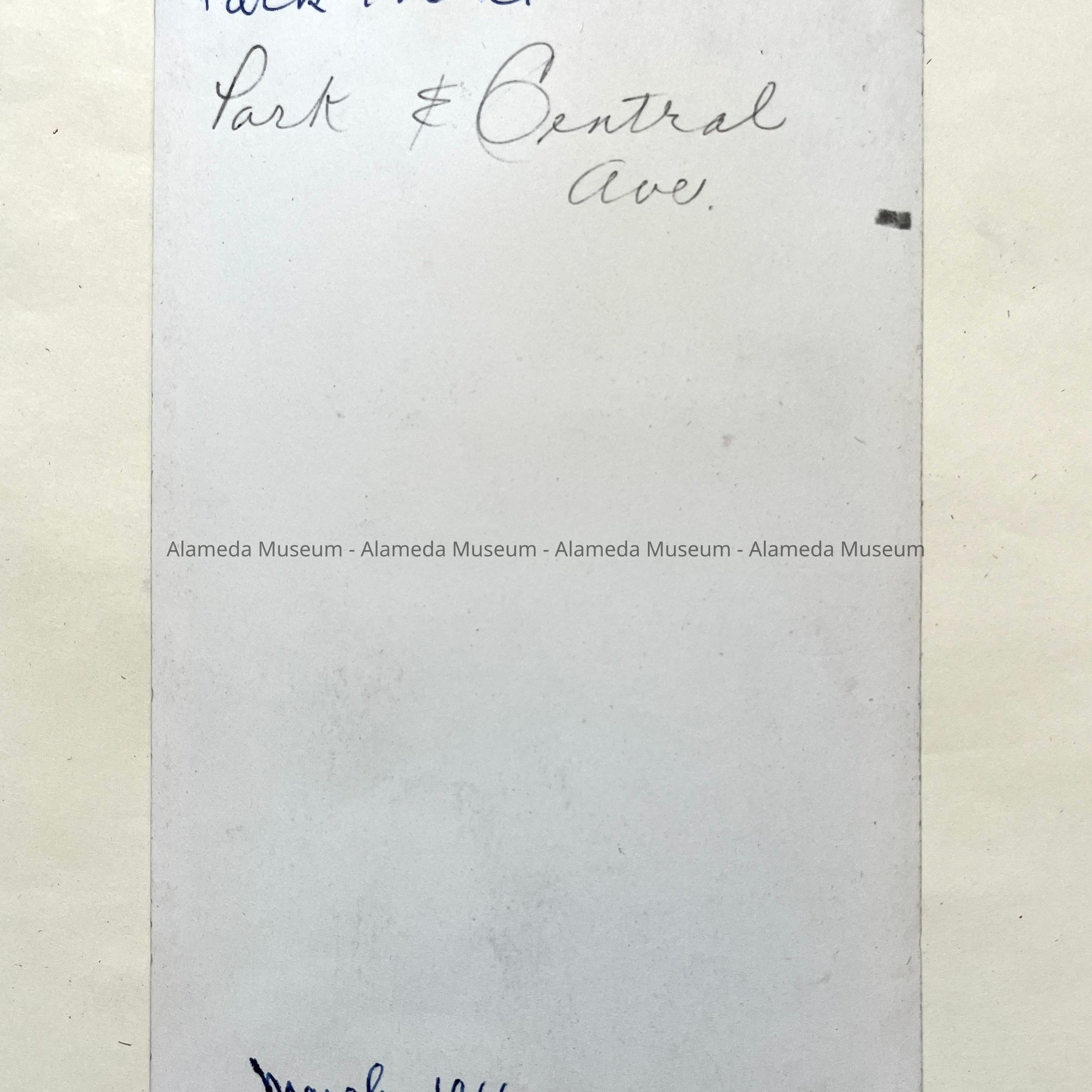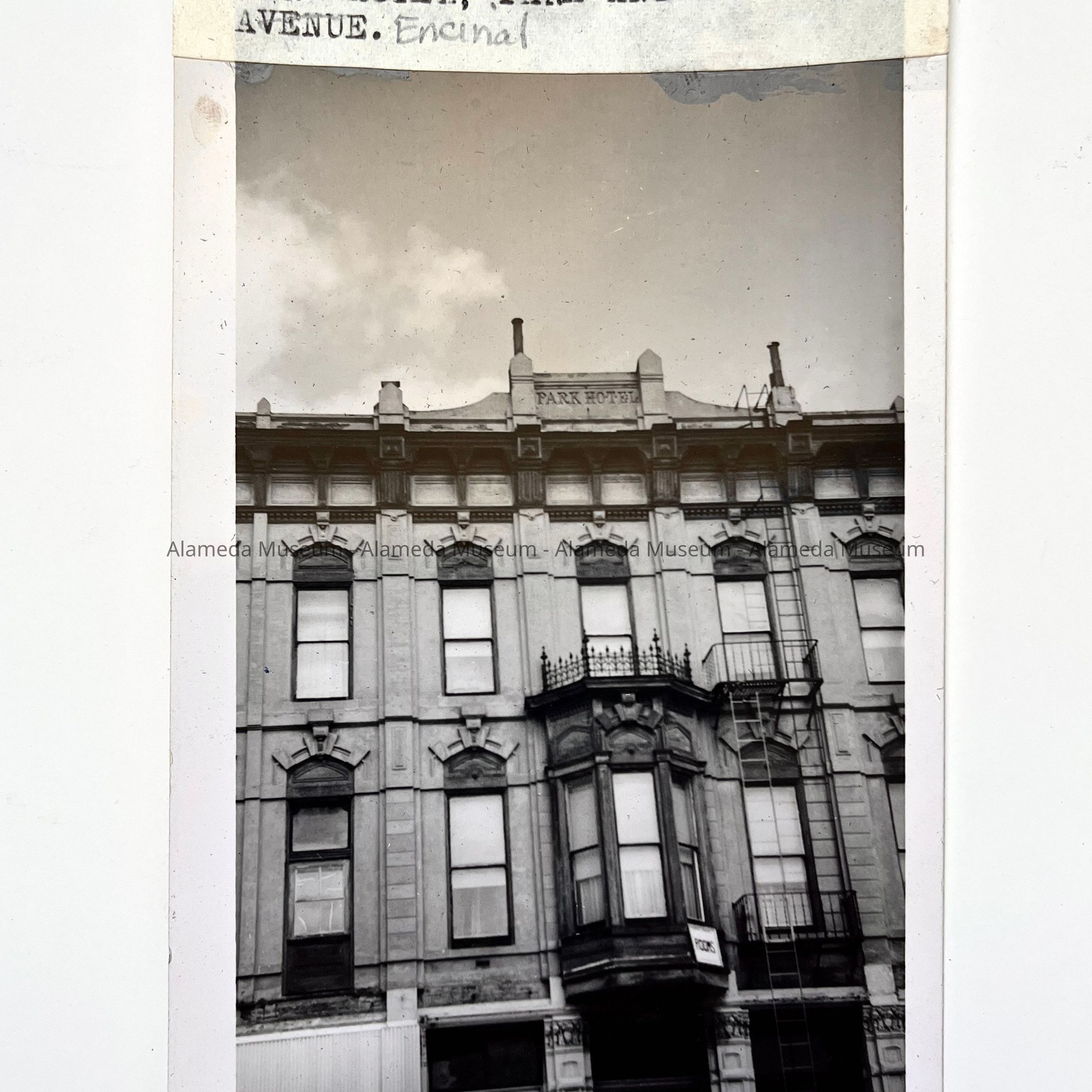 Photograph depicting the main façade of the Park Hotel at Park Street and Encinal Avenue, which was demolished to make room for the main branch of the Alameda Fire Department.
