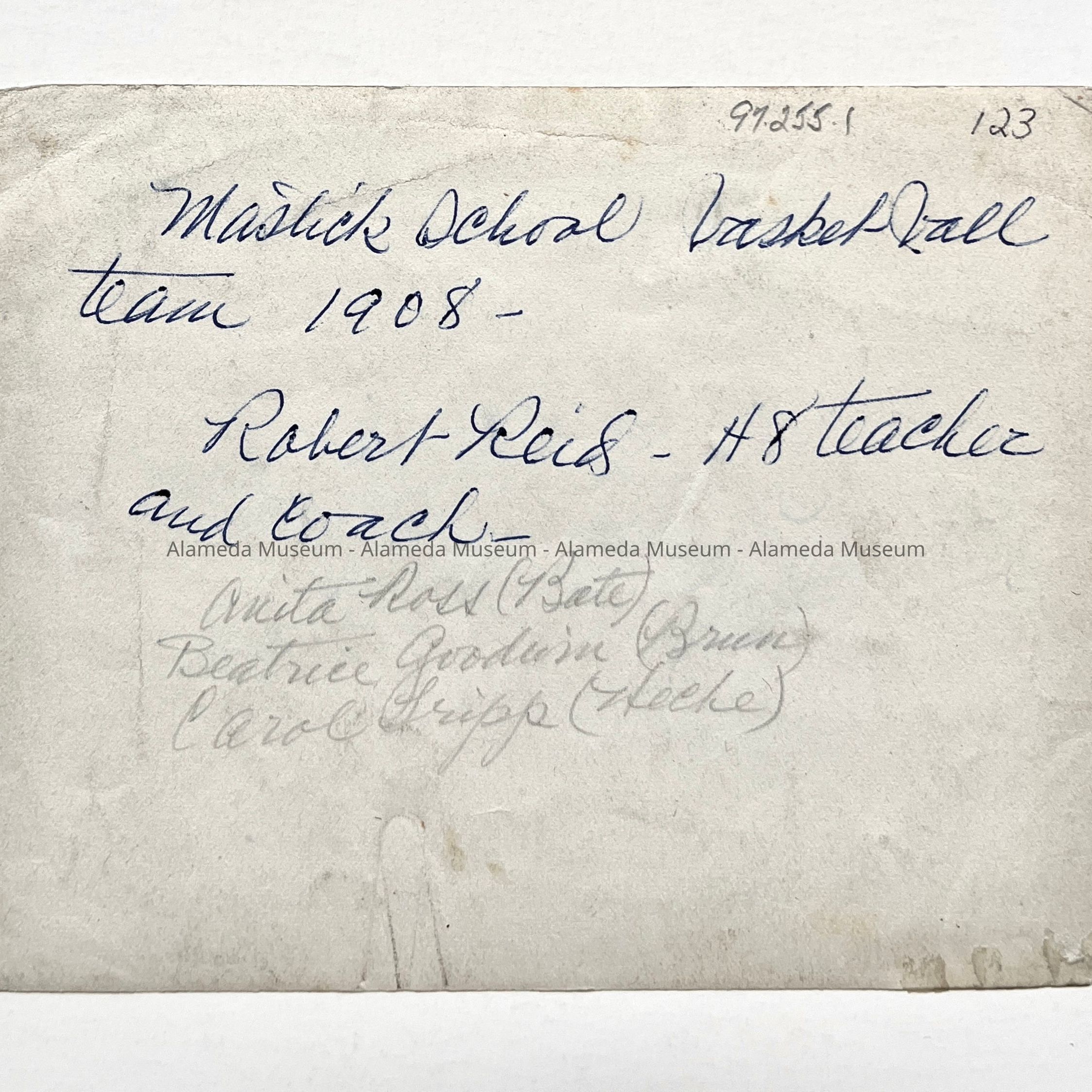 Photo Mastick School girl's basketball team, 1908Entry/Object ID