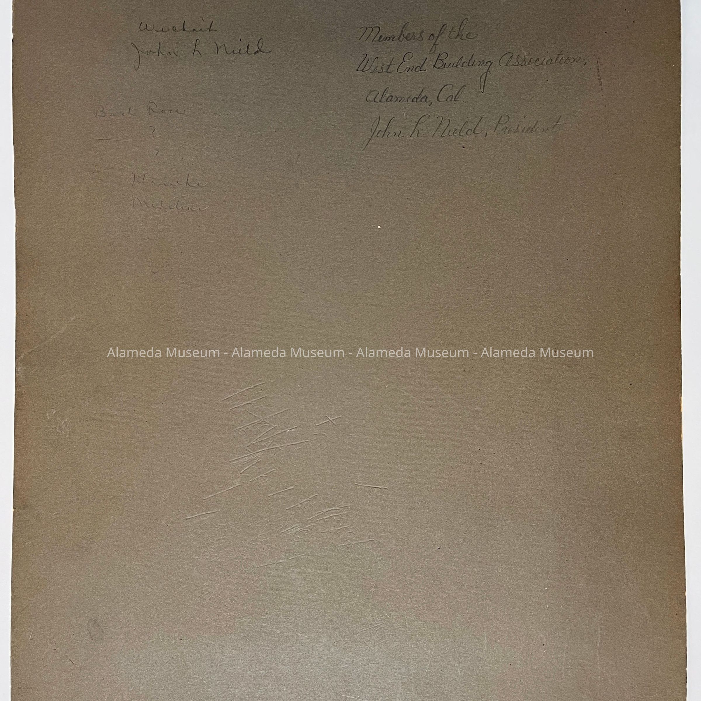 Photo-group portrait of the members of the West End Building Association, Alameda, Cal., John L. Nield, President.