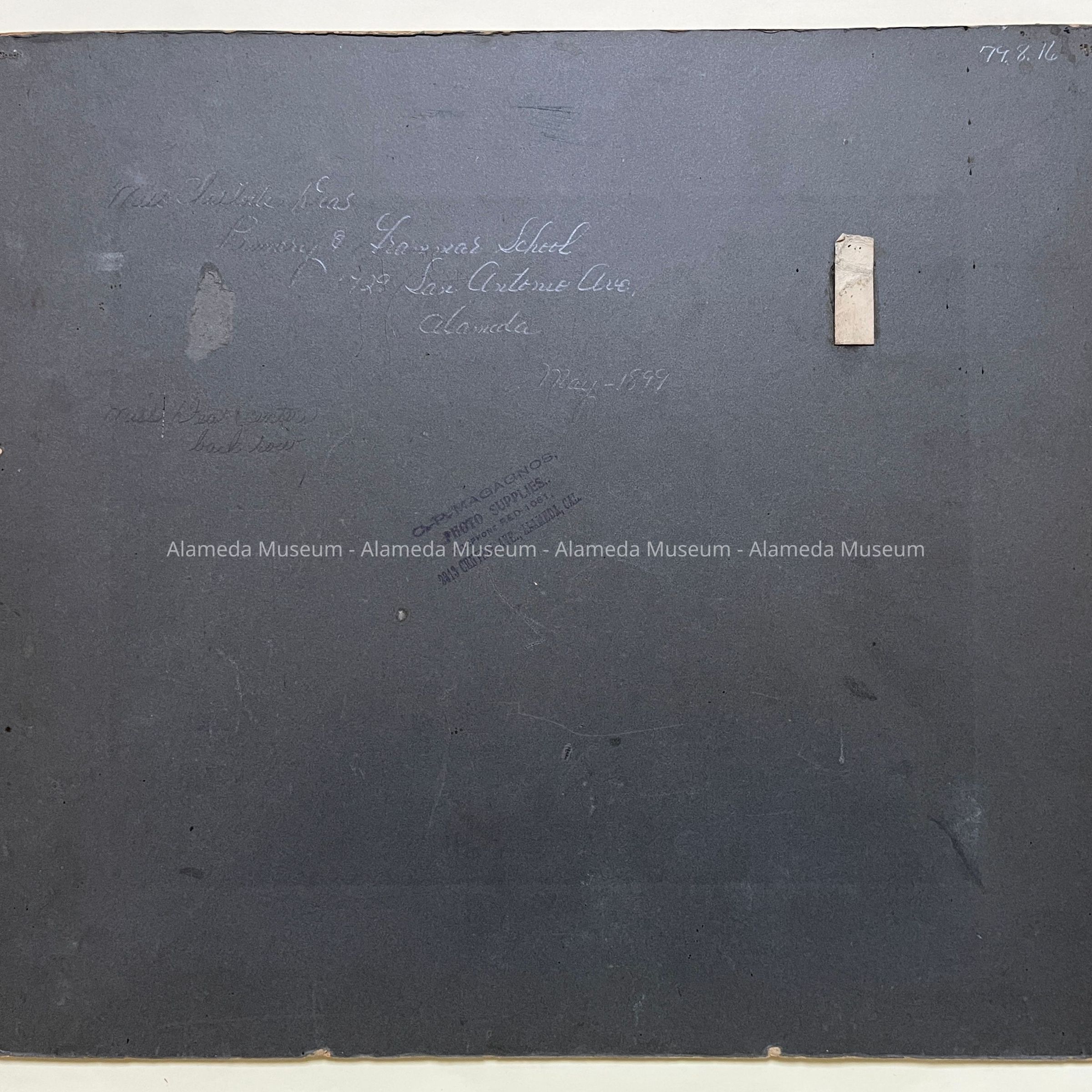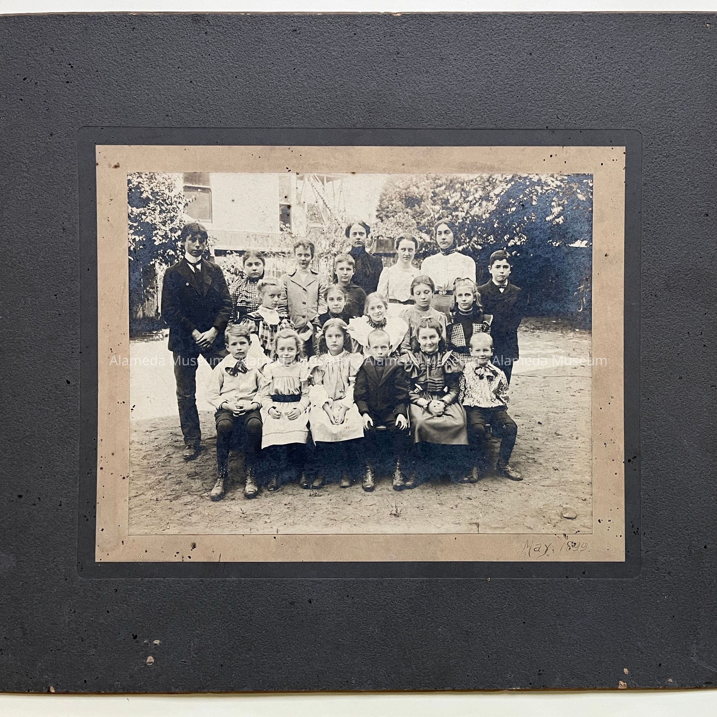 History of Object: Photo of Miss. Charlotte Deas, primary & grammar school, 1729 San Antonio avenue, Alameda. Ms. Deas standing in 4th row (middle). Students unidentified. The school was located in a building in the backyard of the Deas residence. The picture is dated, May, 1899
