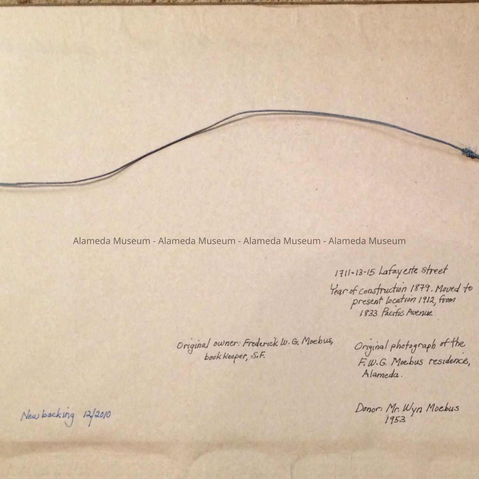 History of Object: Framed photograph of the old home of F. W. B. Moebus, Pacific avenue, erected about 1880