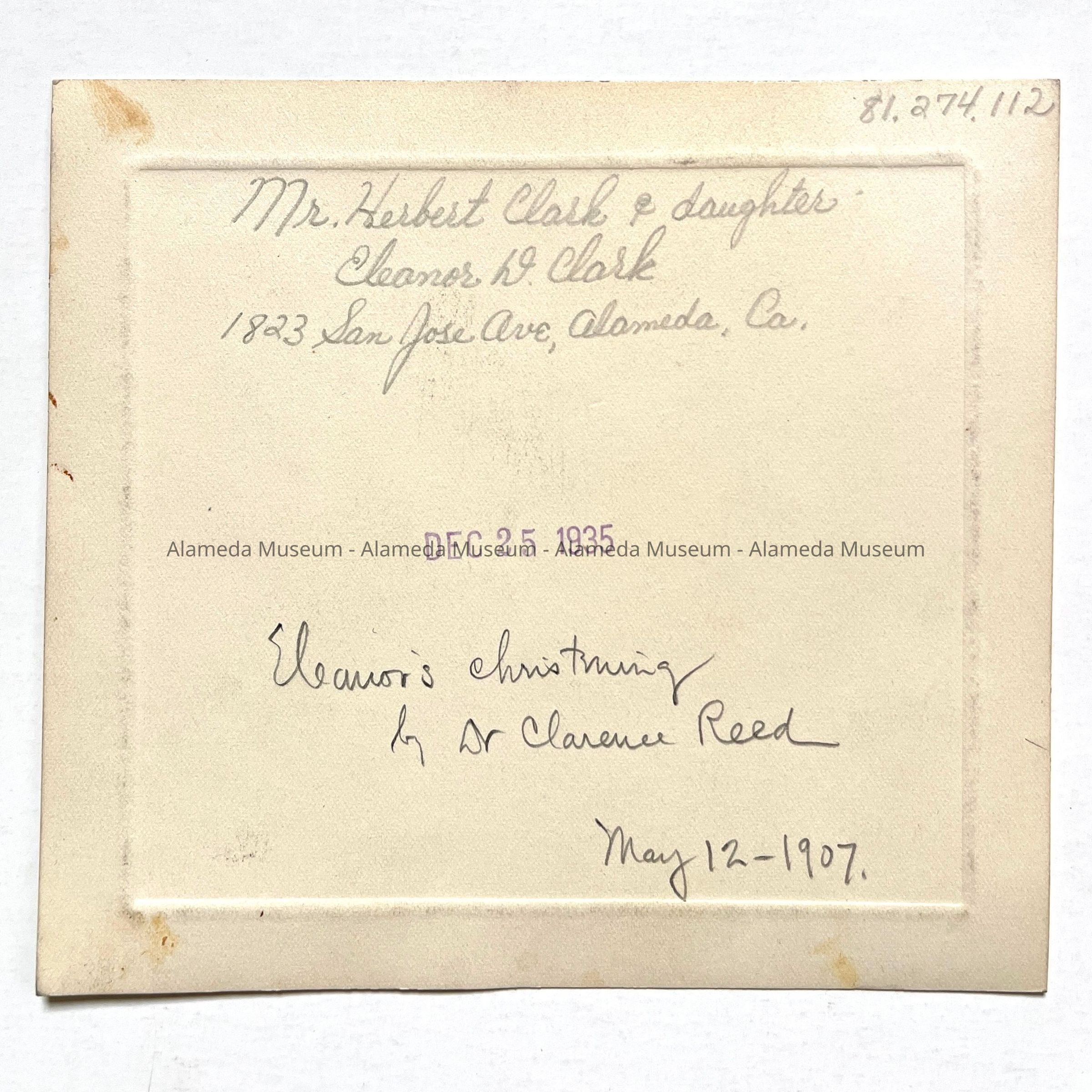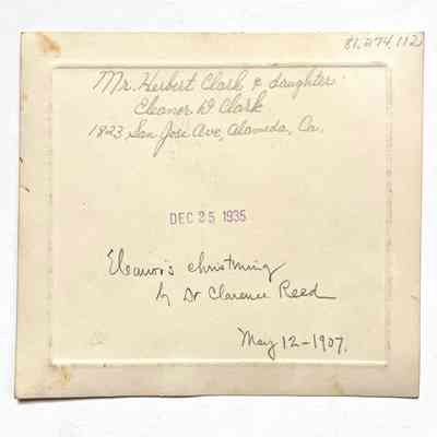 Photo Mr. Herbert D. Clark and daughter Eleanor D. Clark at christening, 1907Entry/Object ID