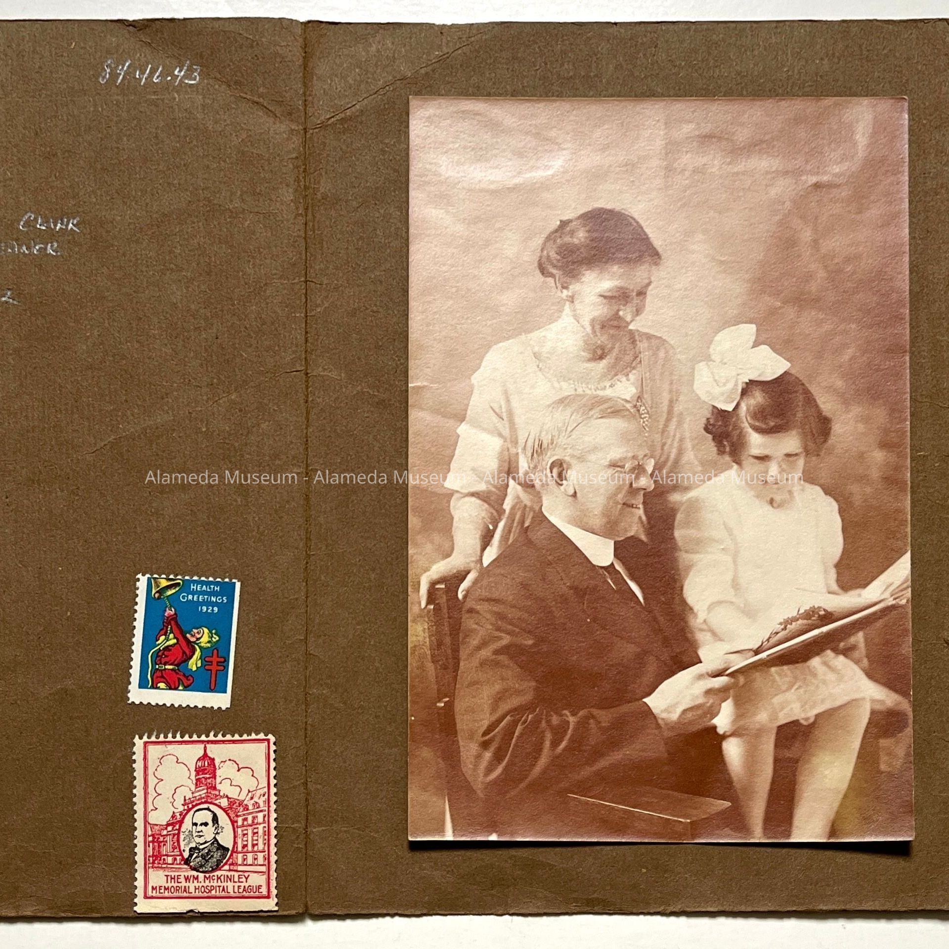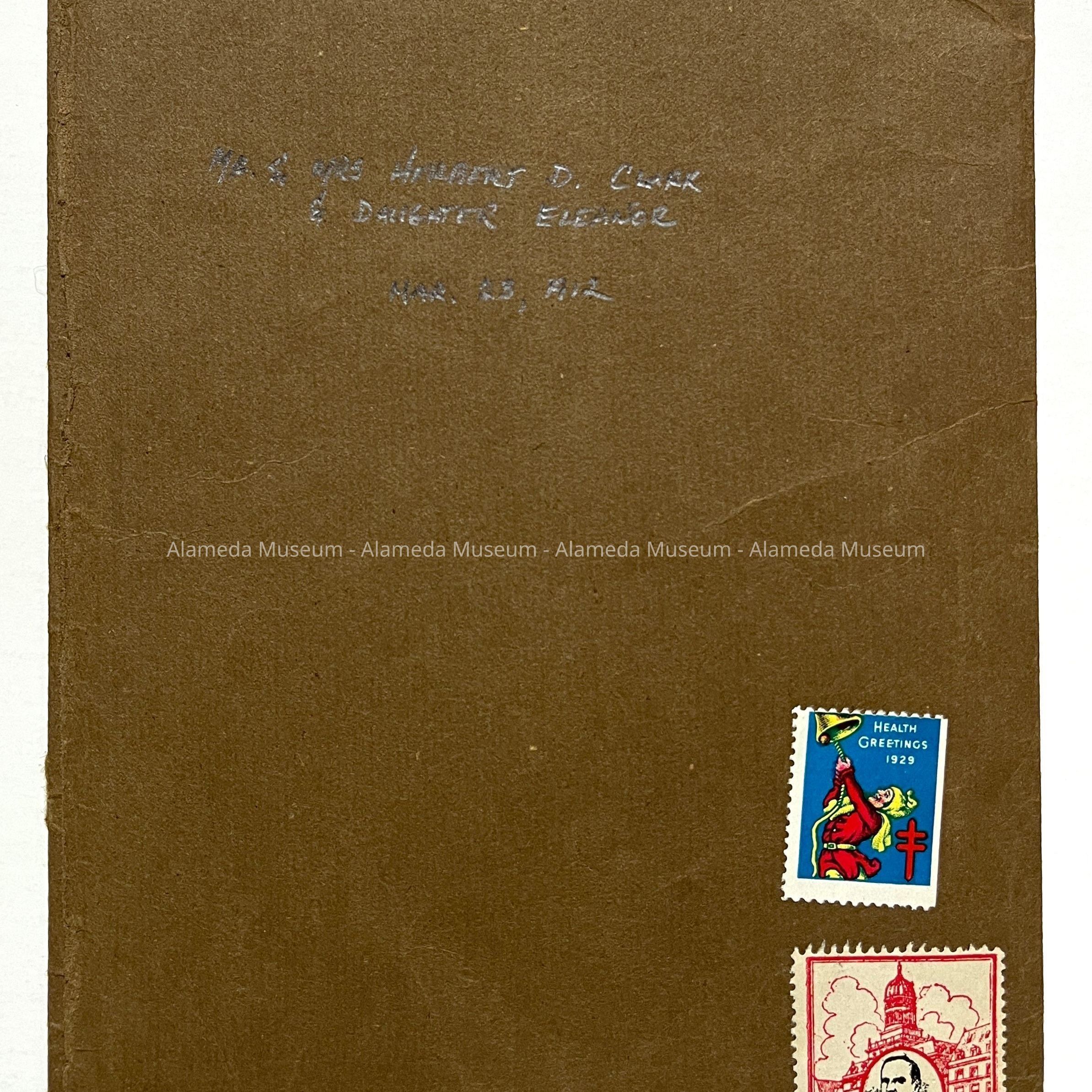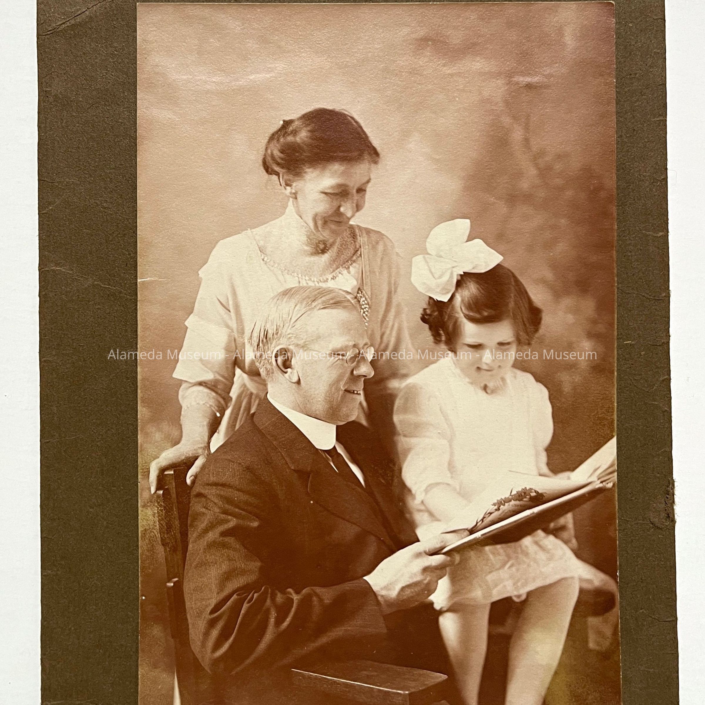 History of Object: Photo dated March 23rd, 1912 of Mr. & Mrs. Herbert D. Clark and daughter Eleanor, old time residents of Alameda, California.