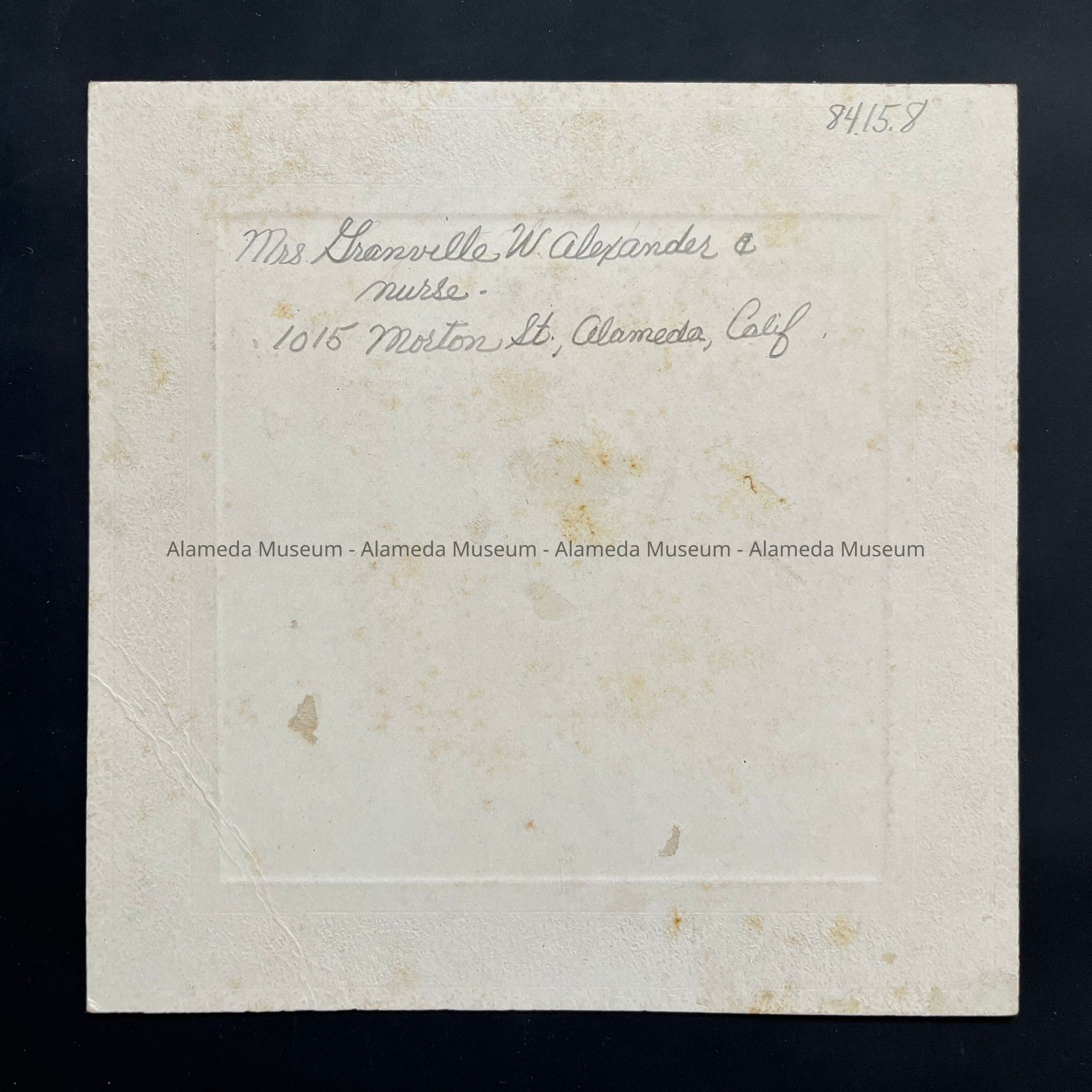 History of Object: Photo of Mrs. Granville W. Alexander and nurse, 1015 Morton St., Alameda. The Alexander family resided there from approximately 1894 to 1906.