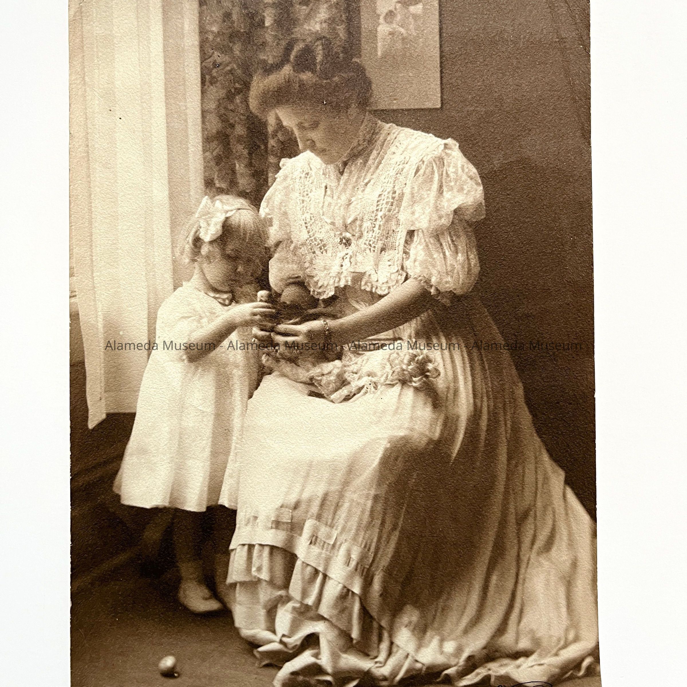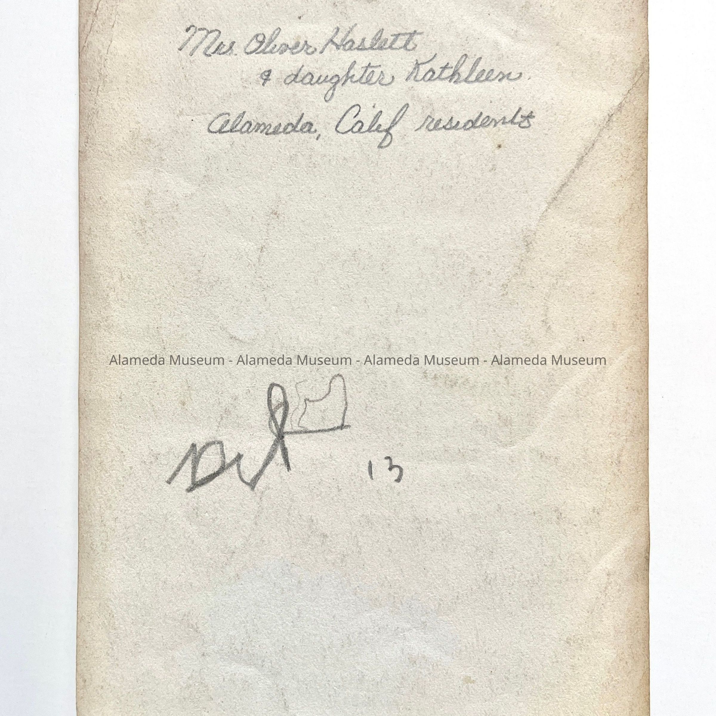 History of Object: Photo of Mrs. Oliver Haslett & daughter Kathleen, members of an old-time Alameda family.