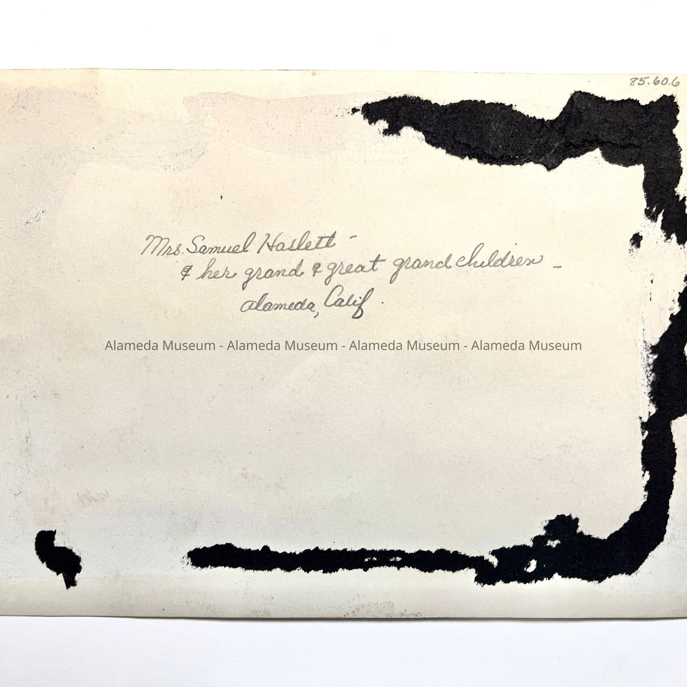 Photo of Mrs. Samuel Haslett and her grand & great grandchildren, Alameda, Calif. The Haslett family settled in Alameda in the 1870's.