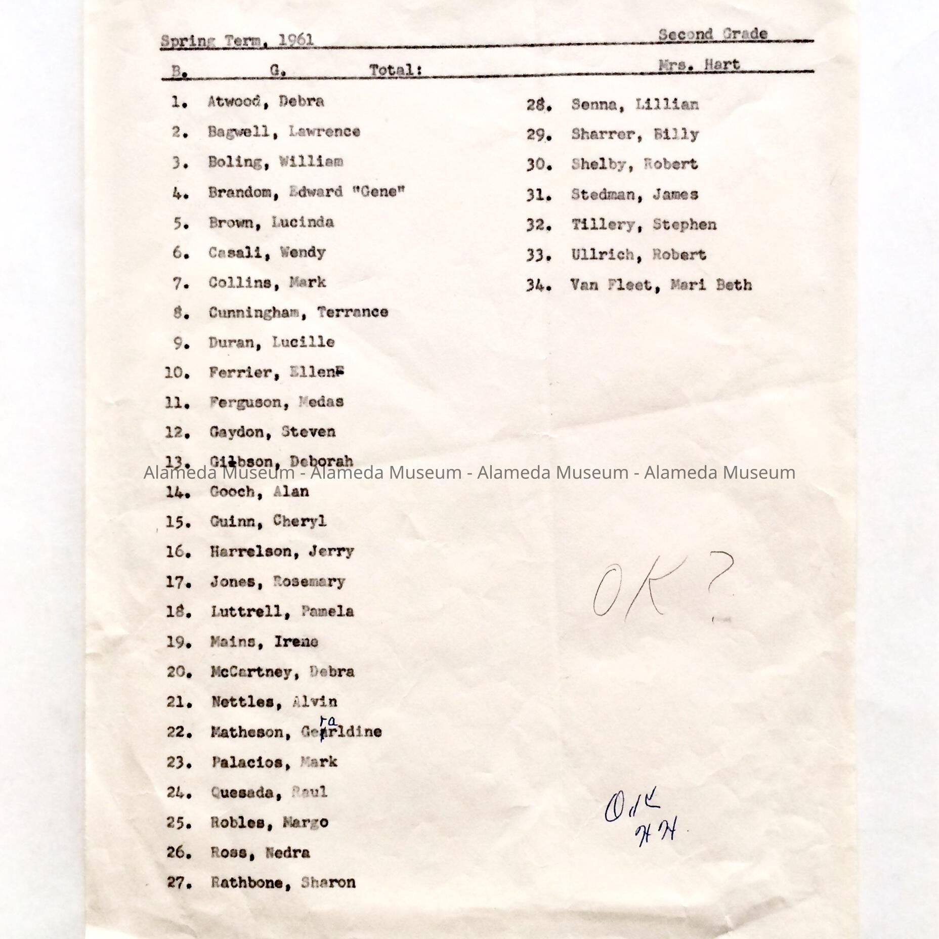 Photo Ms Hart's second grade Class, Mastick School, 1961Entry/Object ID