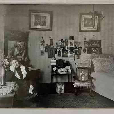 Photo negative of Augusta Busse in the second bedroom of 1523 Mozart Street, 1920Entry/Object ID