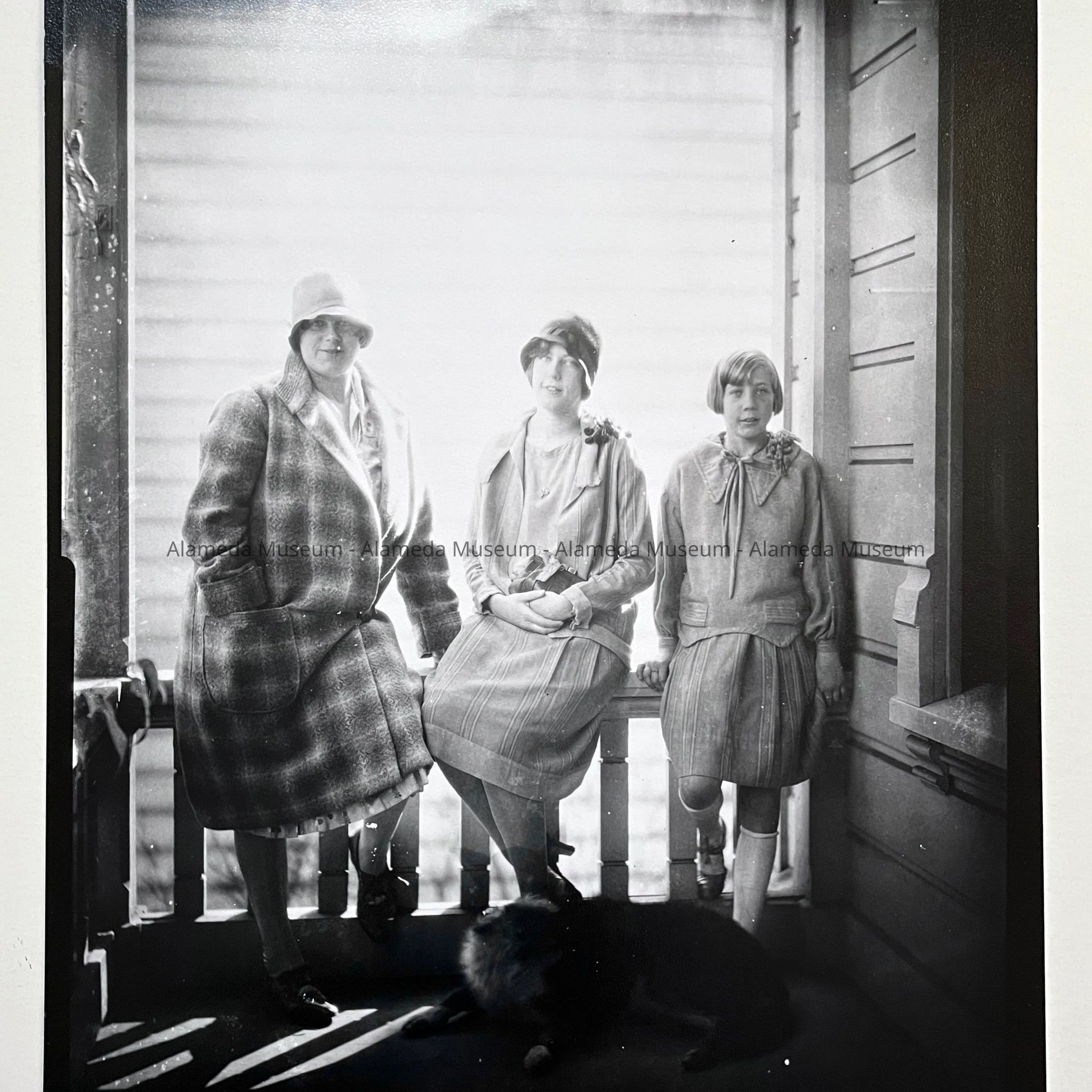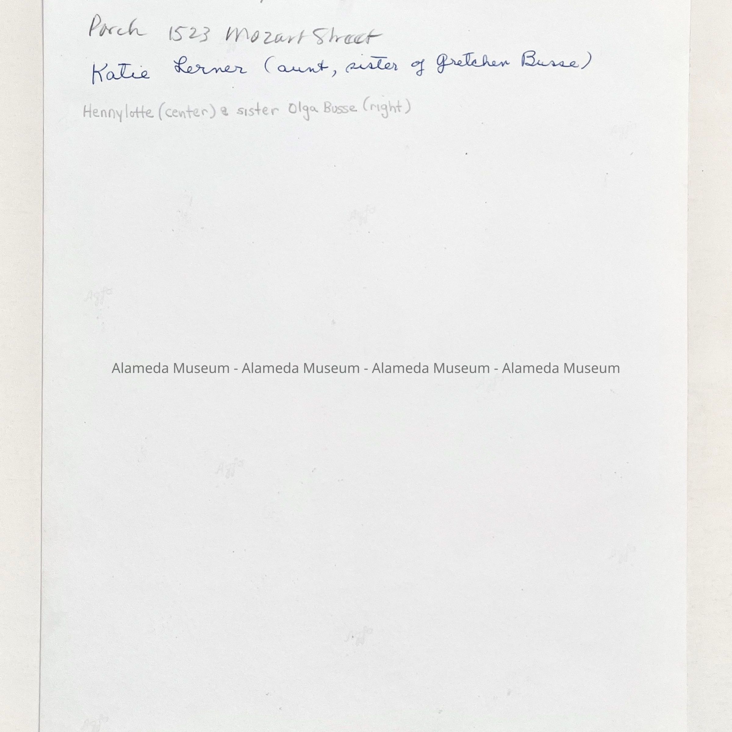 (right) with their Aunt Katie Lerner (sister of Gretchen Busse), on the porch of 1523 Mozart Street, Alameda.