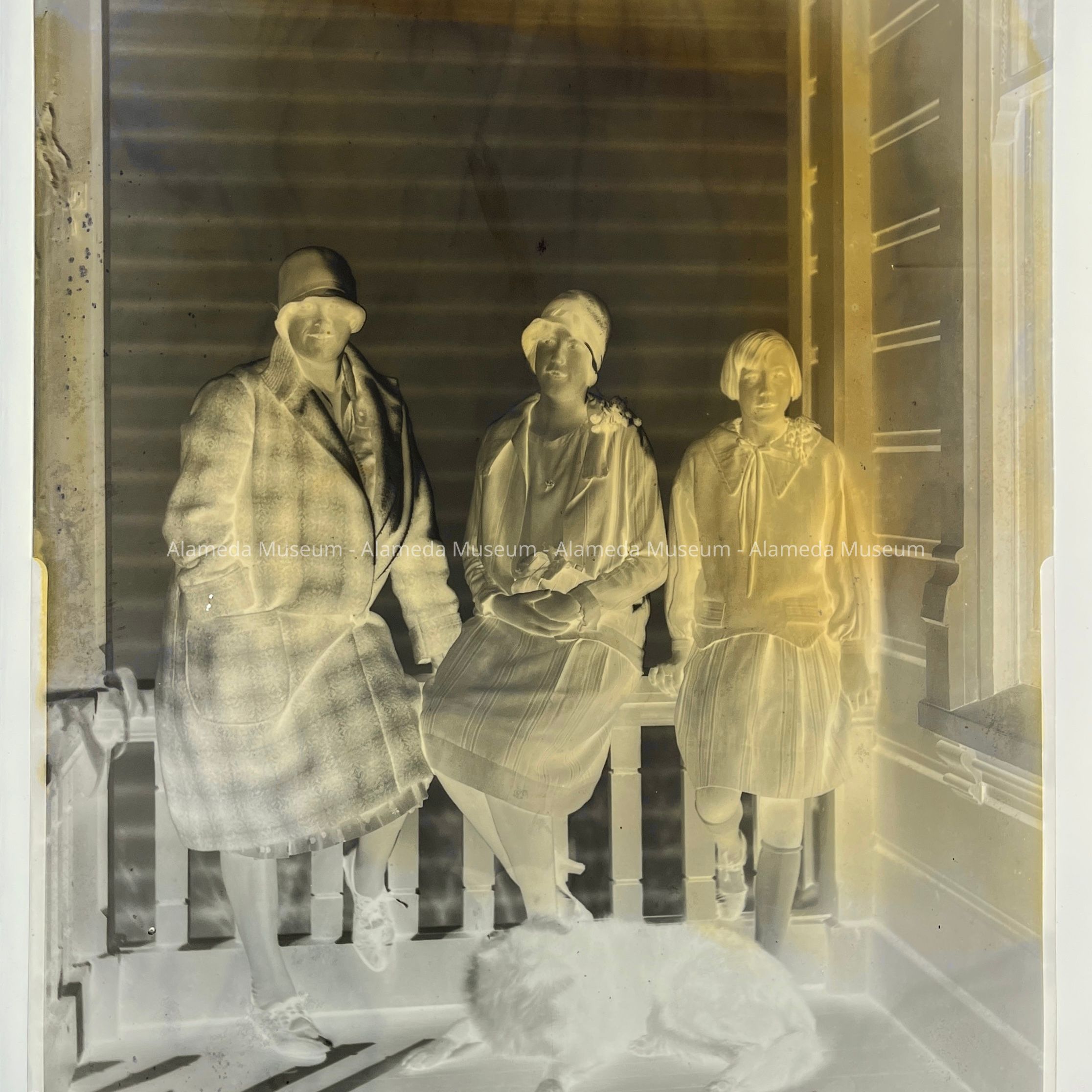 History of Object: Photo negative of Hennylotte (center)and sister Olga Busse