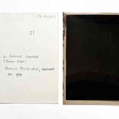 Description: Glossy black/white photo, unmounted, with its black celluloid negative. Photographer unknown.