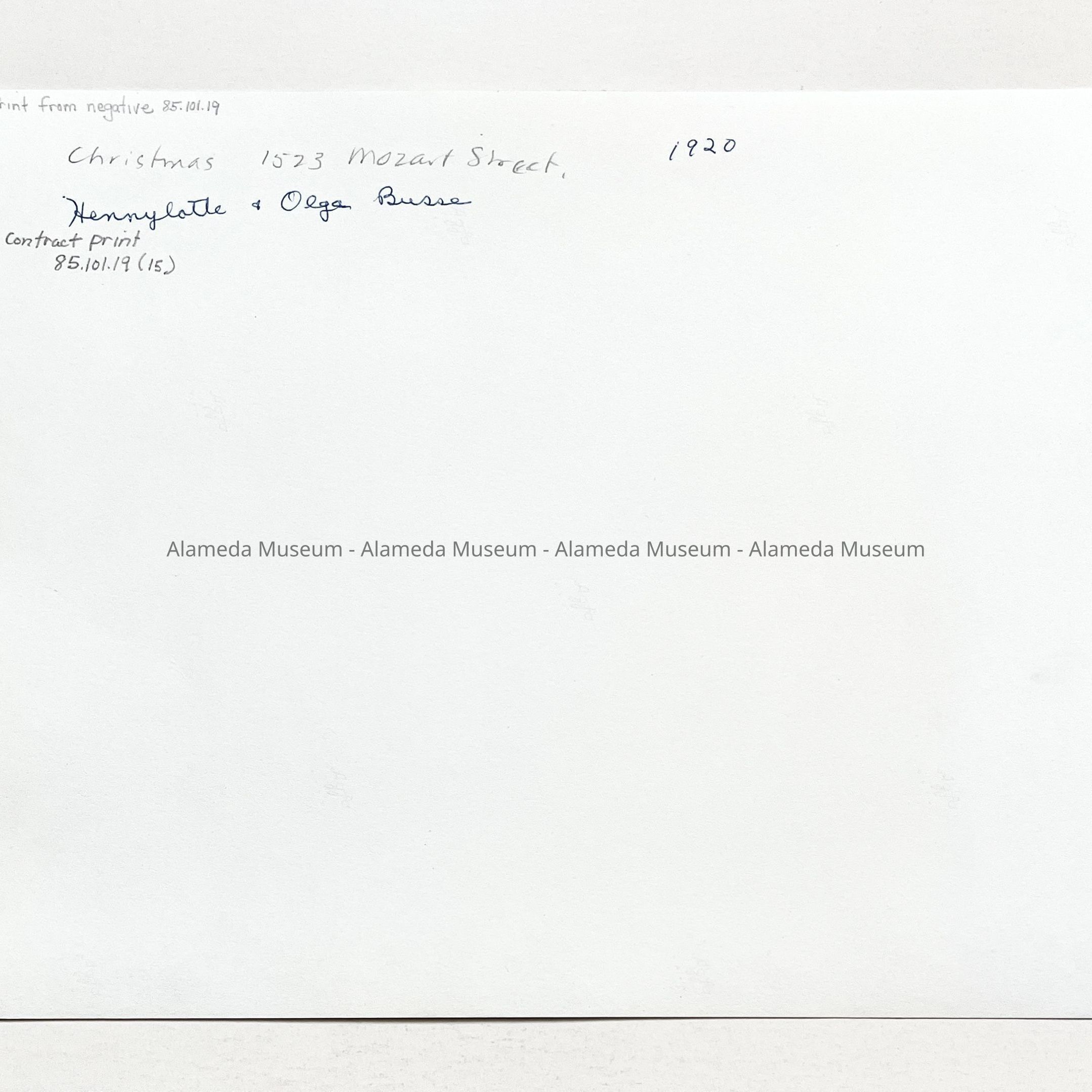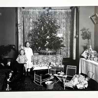 Photo negative of Hennylotte and Olga Busse, Christmas at 1523 Mozart Street, 1919-1920Entry/Object ID