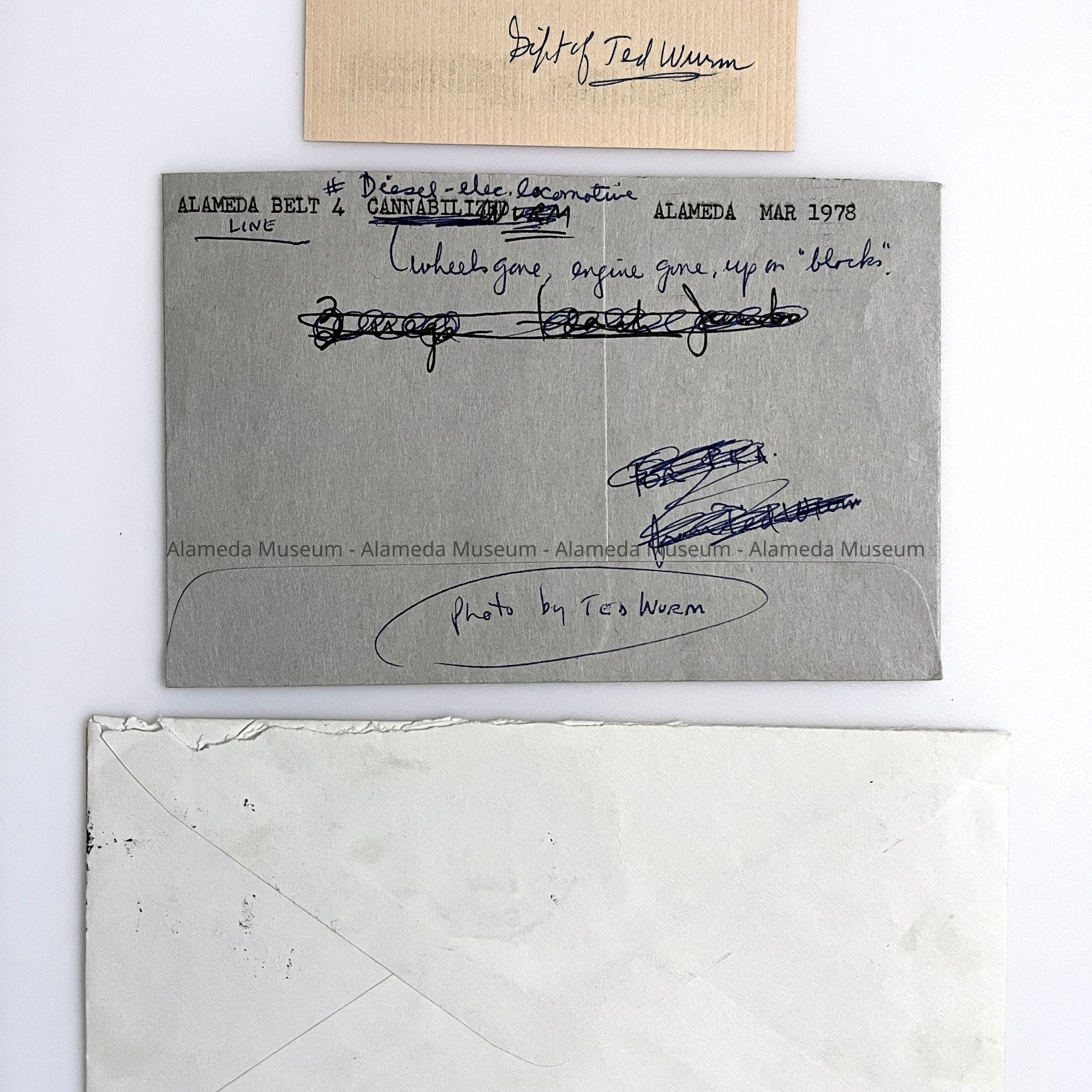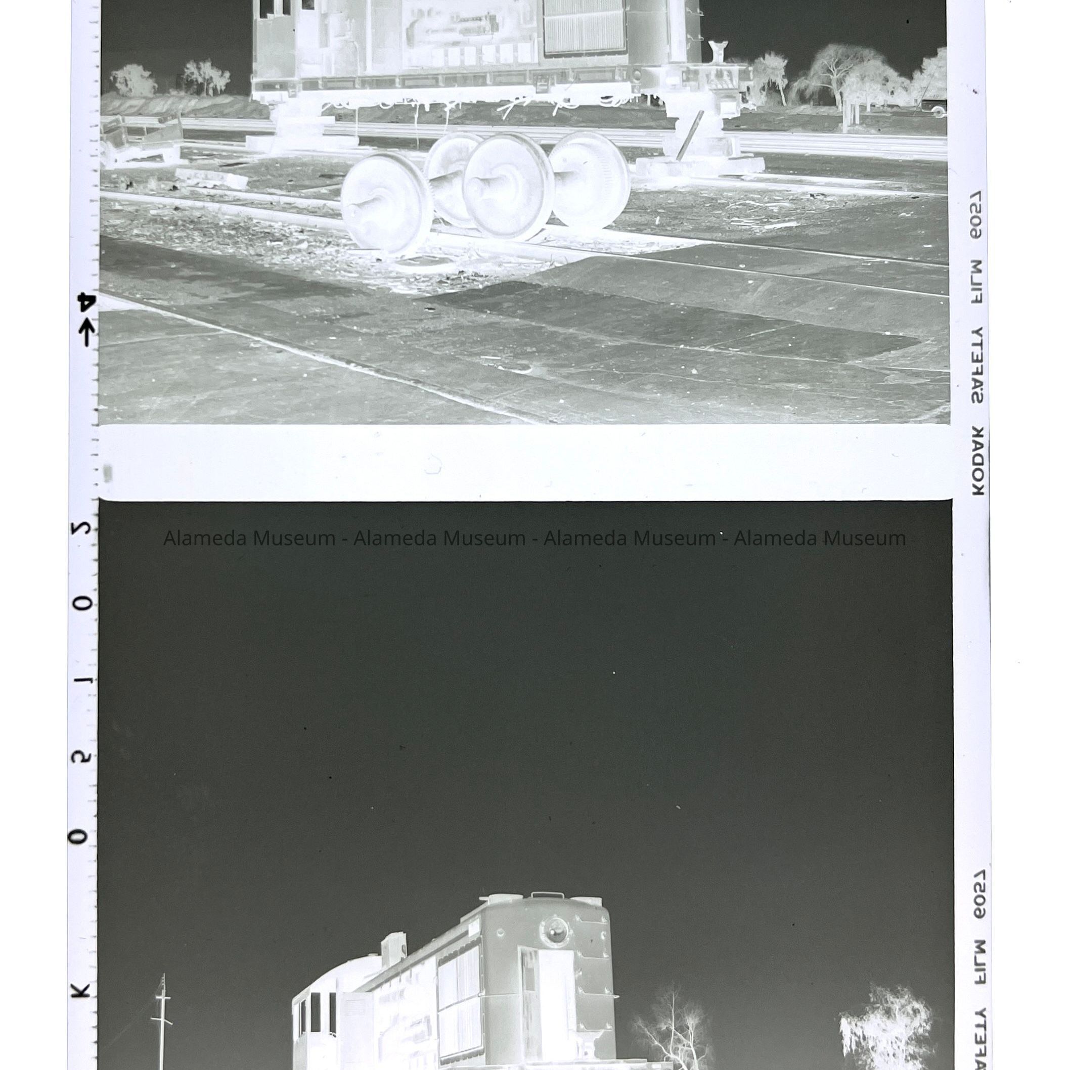 Photo negatives of Alameda Belt Line Locomotive #4 on blocks, c. 1978Entry/Object ID