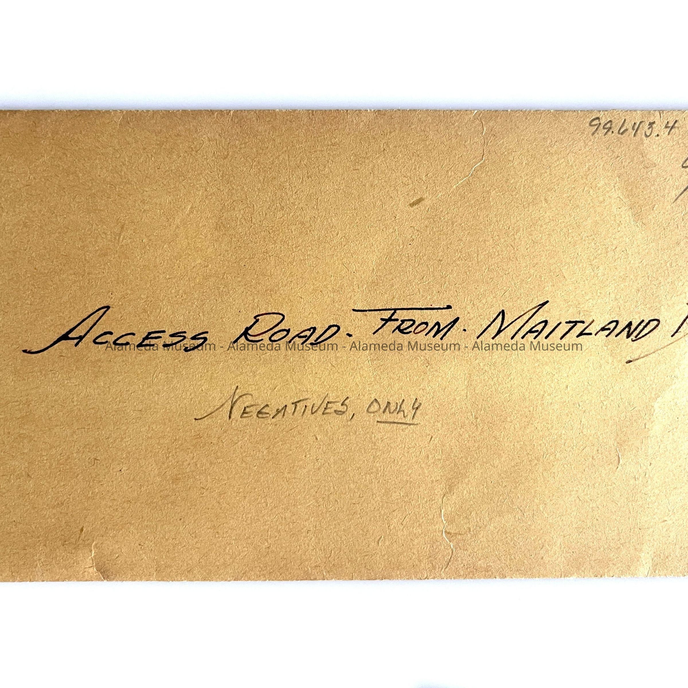 Photo negatives of an access road from Maitland Drive, c. 1955Entry/Object ID
