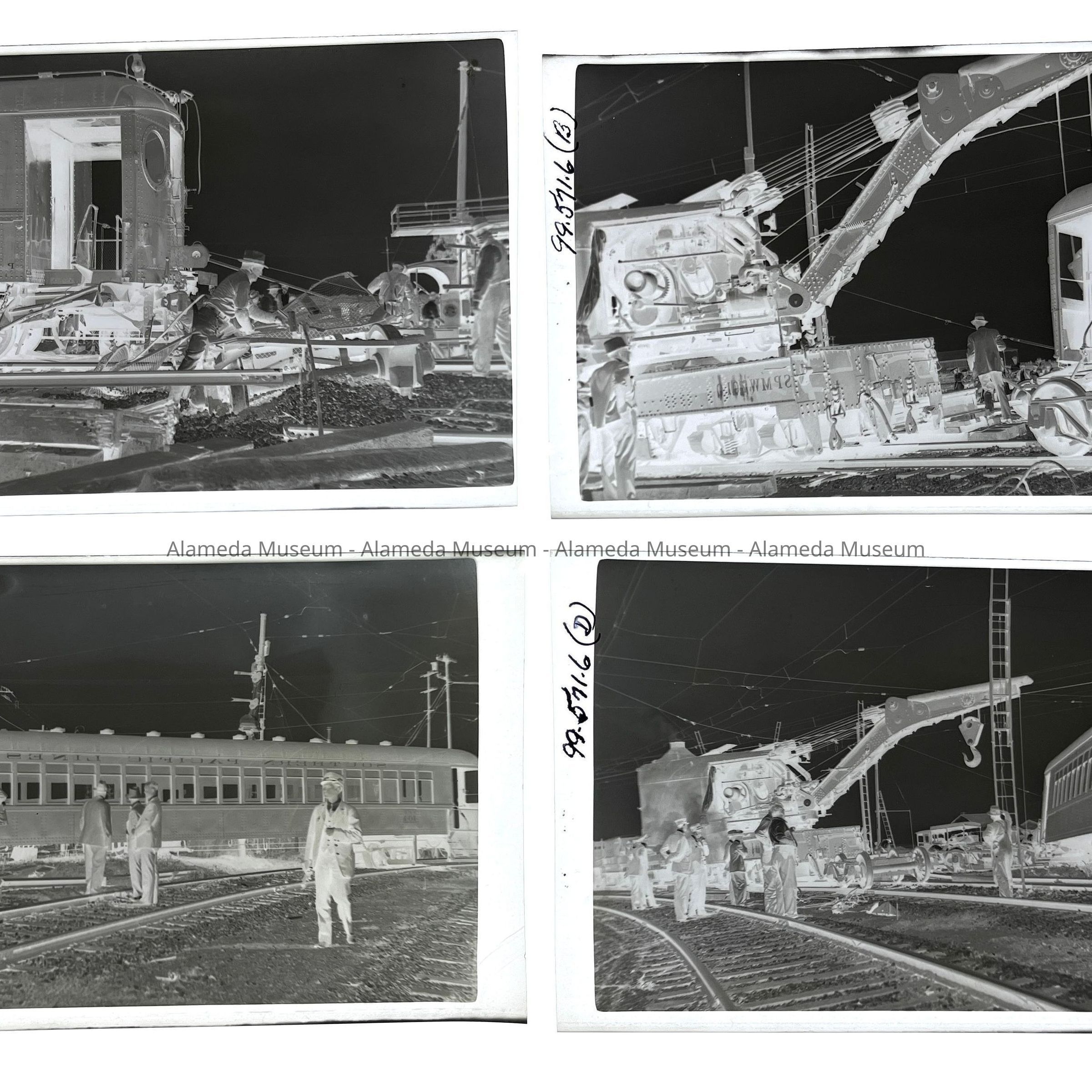 History of Object: Views of damage repair to a Southern Pacific Interurban Railway train in Alameda. The photographer was employed by the railroad.