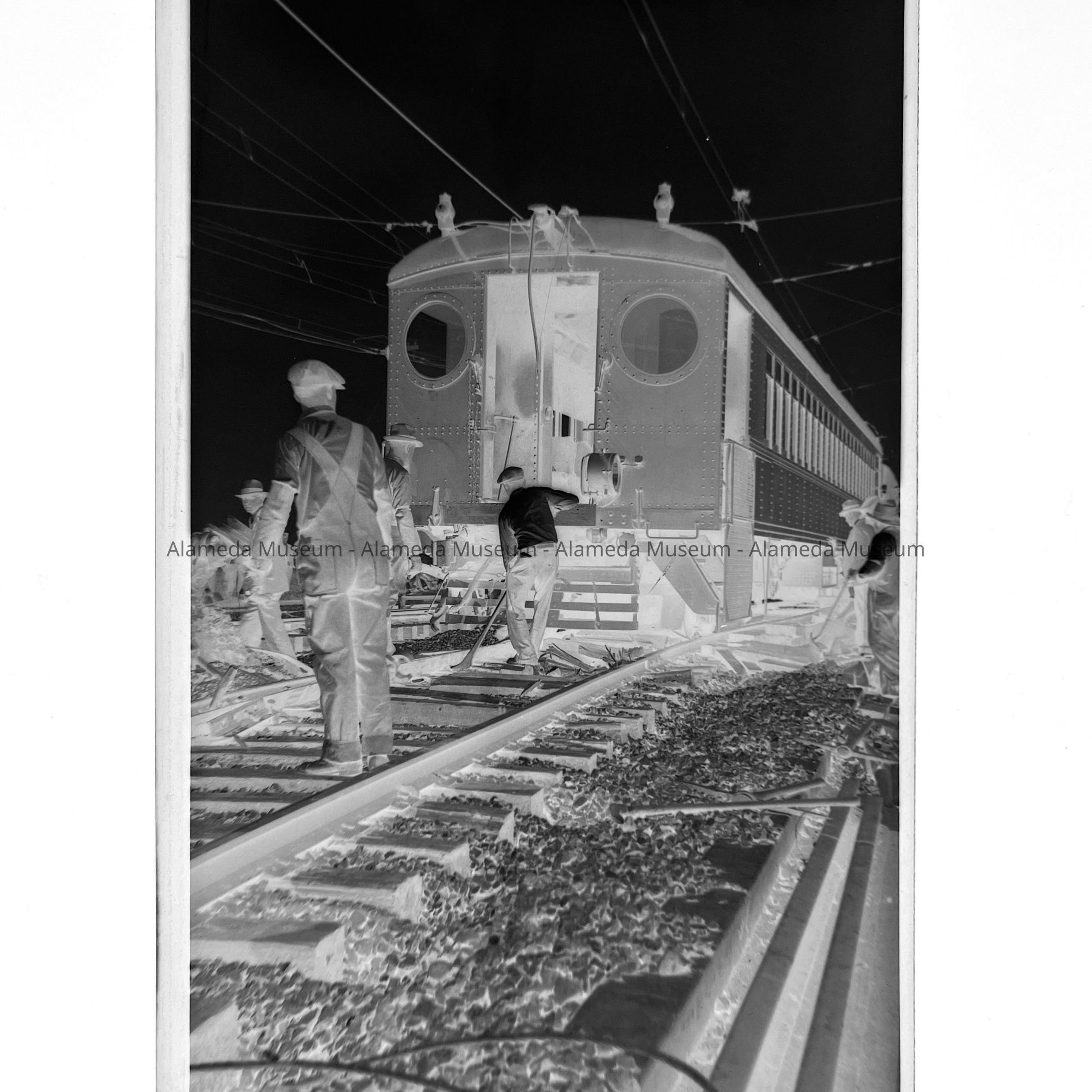 Photo negatives of damage repair to a S. P. Interurban Railway train, c. 1935Entry/Object ID
