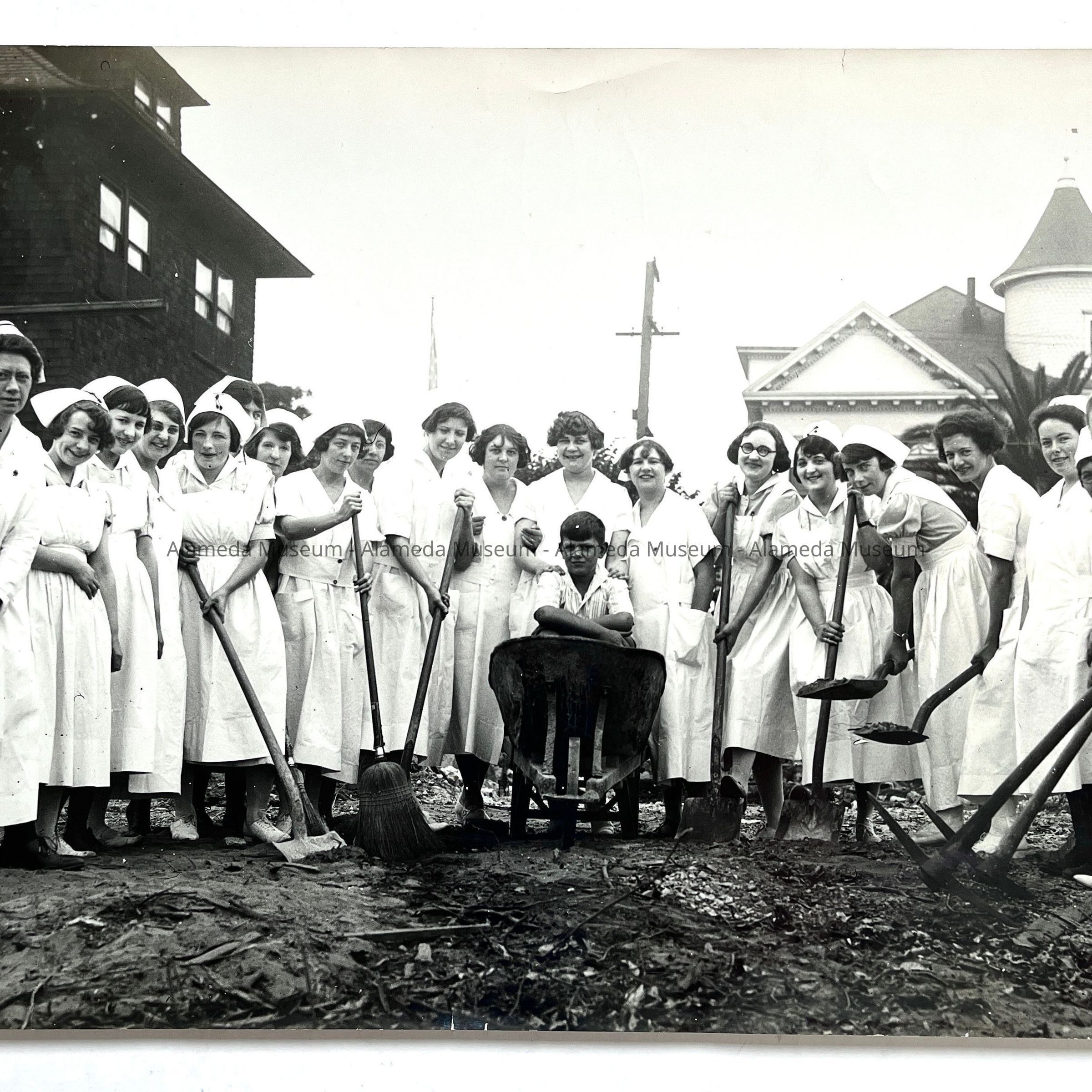 History of Object: Photo of nurses participating in the ground-breaking ceremony for the new Alameda Sanatorium building, August, 1924.