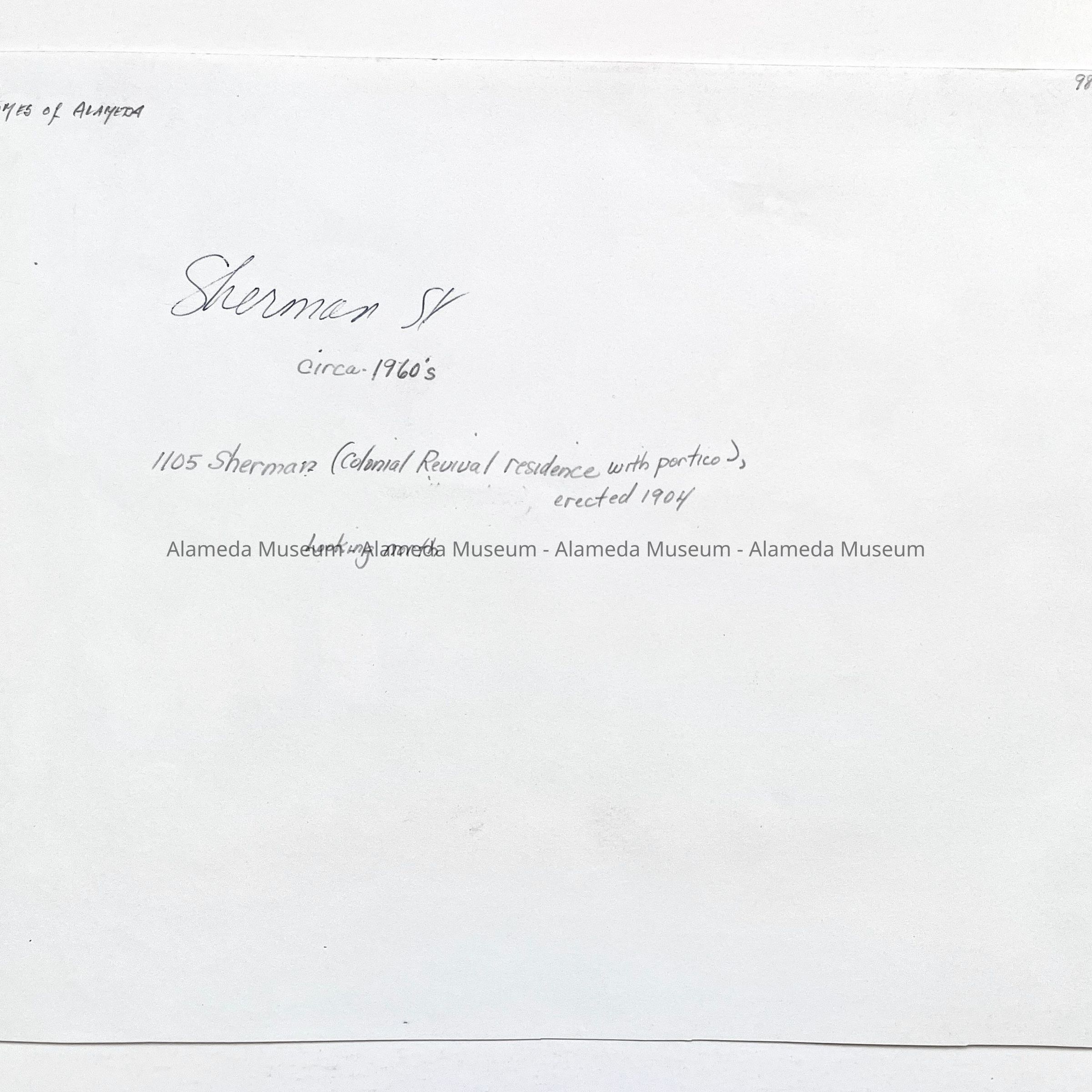Photo of 1105 Sherman Street, c. 1960sEntry/Object ID