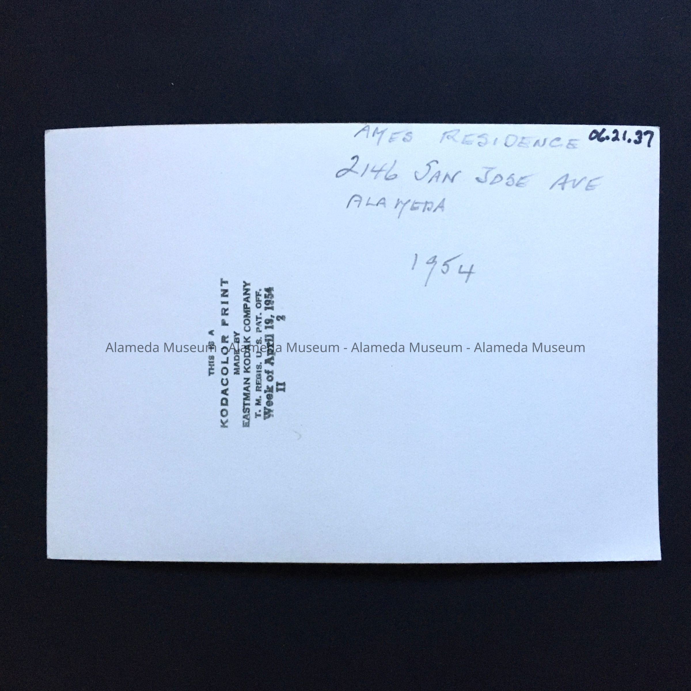 Photo of 2146 San Jose Ave, the Forsyth-Ames residence, 1954Entry/Object ID