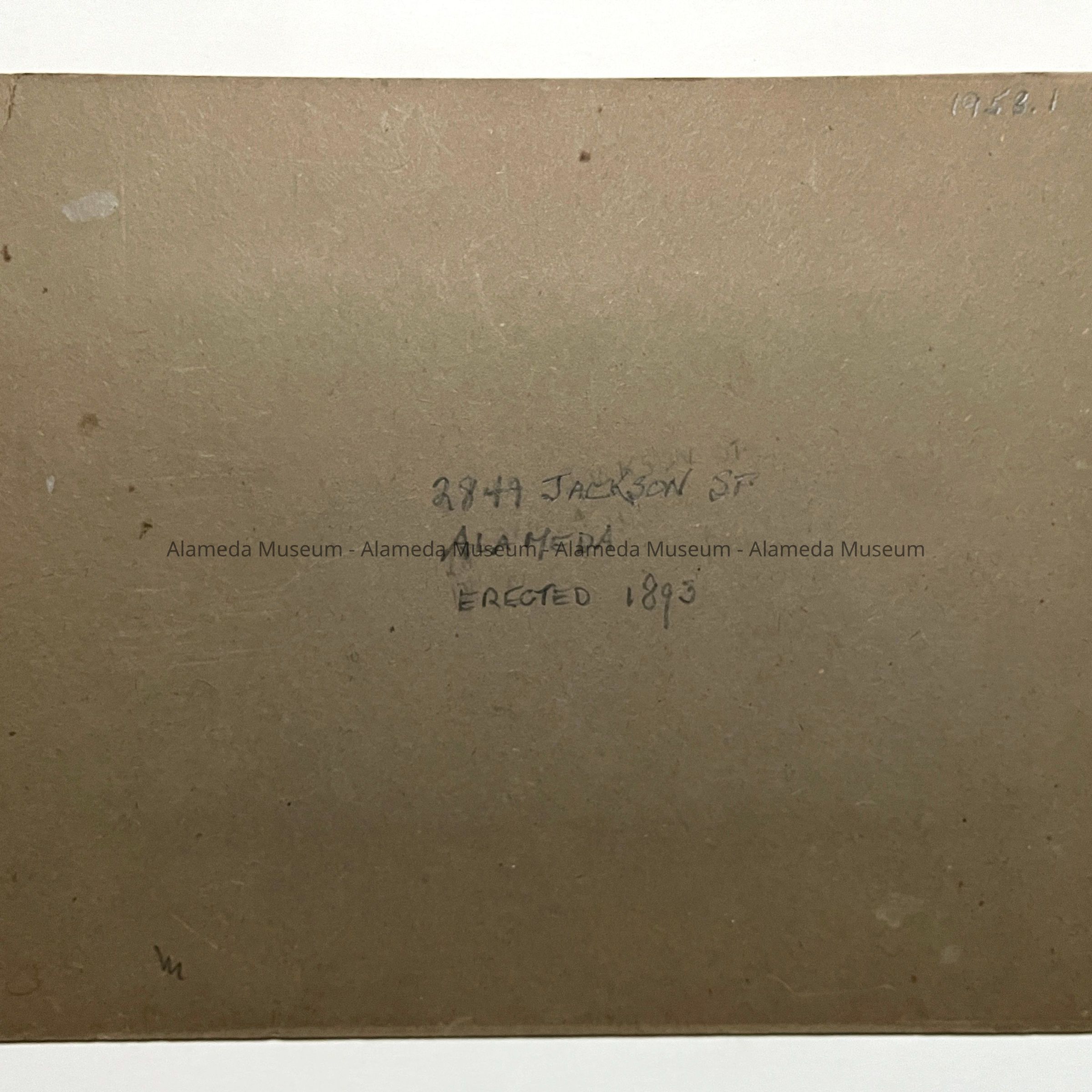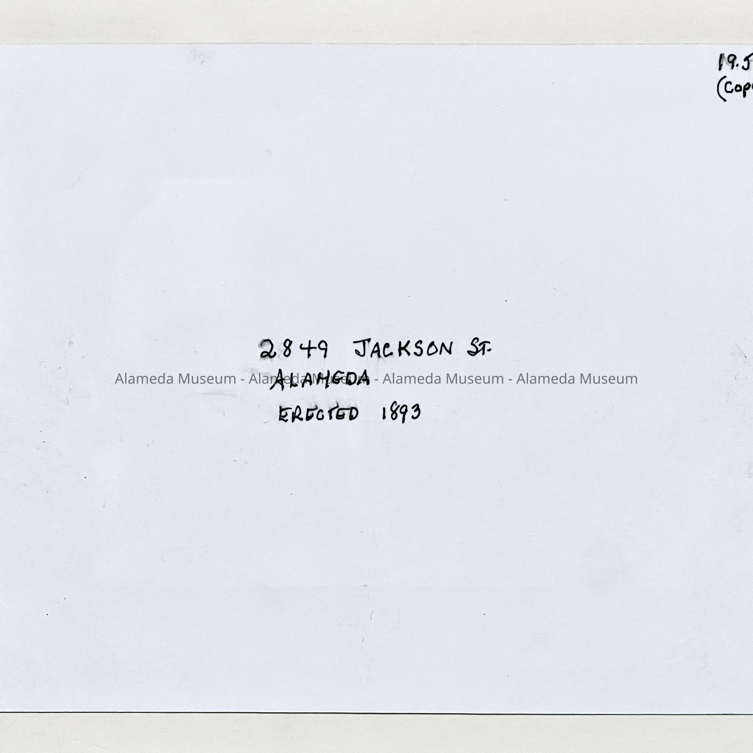 History of Object: A photograph of the exterior of a residence located at 2849 Jackson St., that was erected in 1893 by Peter Christiansen, a pioneer residence builder in Alameda.