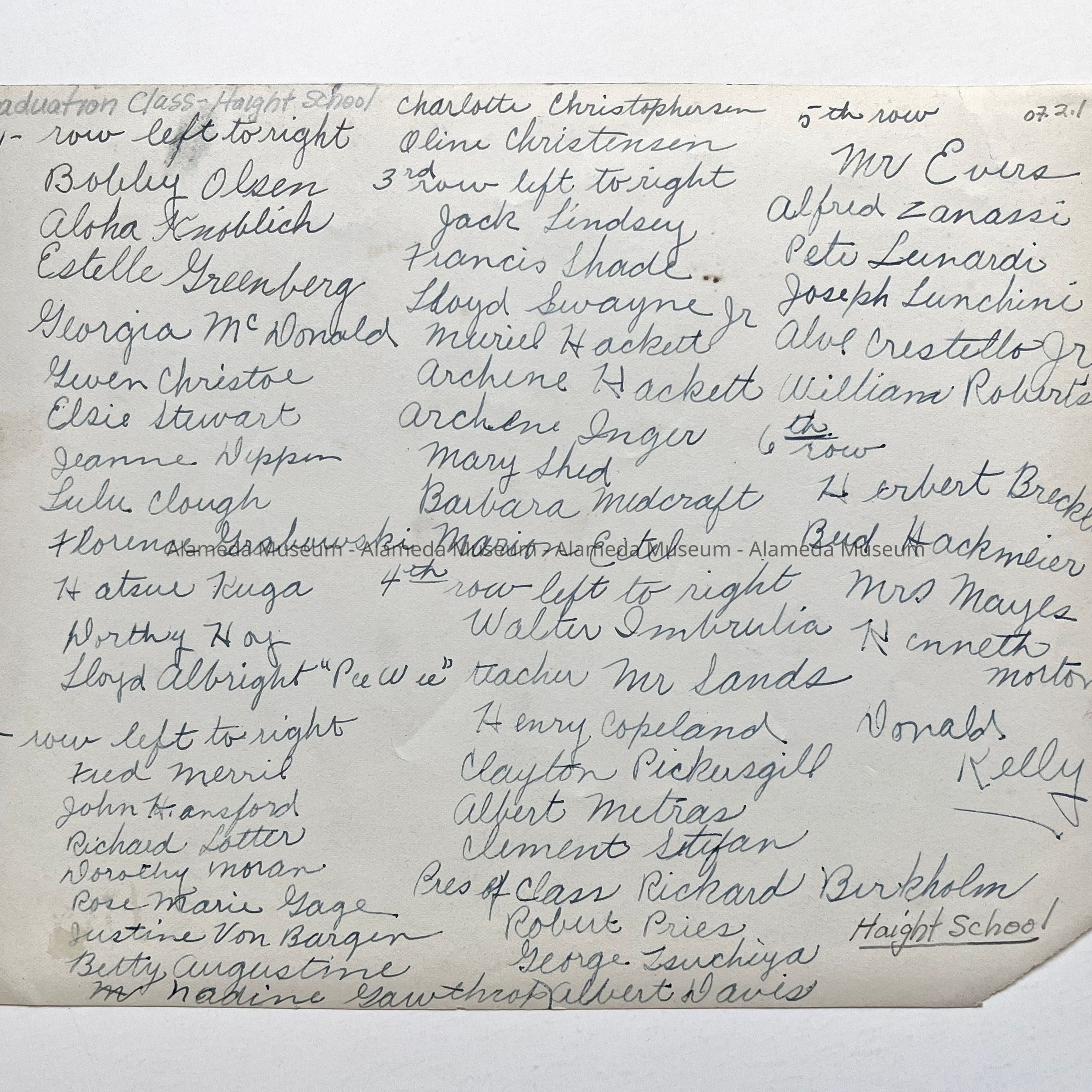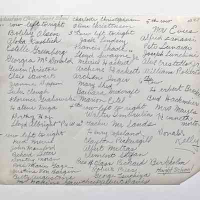 History of Object: Photo of an 8th grade graduating class at Haight School. Students are identified on verso. This and the following collection are from the Shedd family of 1612 Alameda Ave. who were descendants of Charles Dyer Shedd (1818-1893), a noted marine artist.
