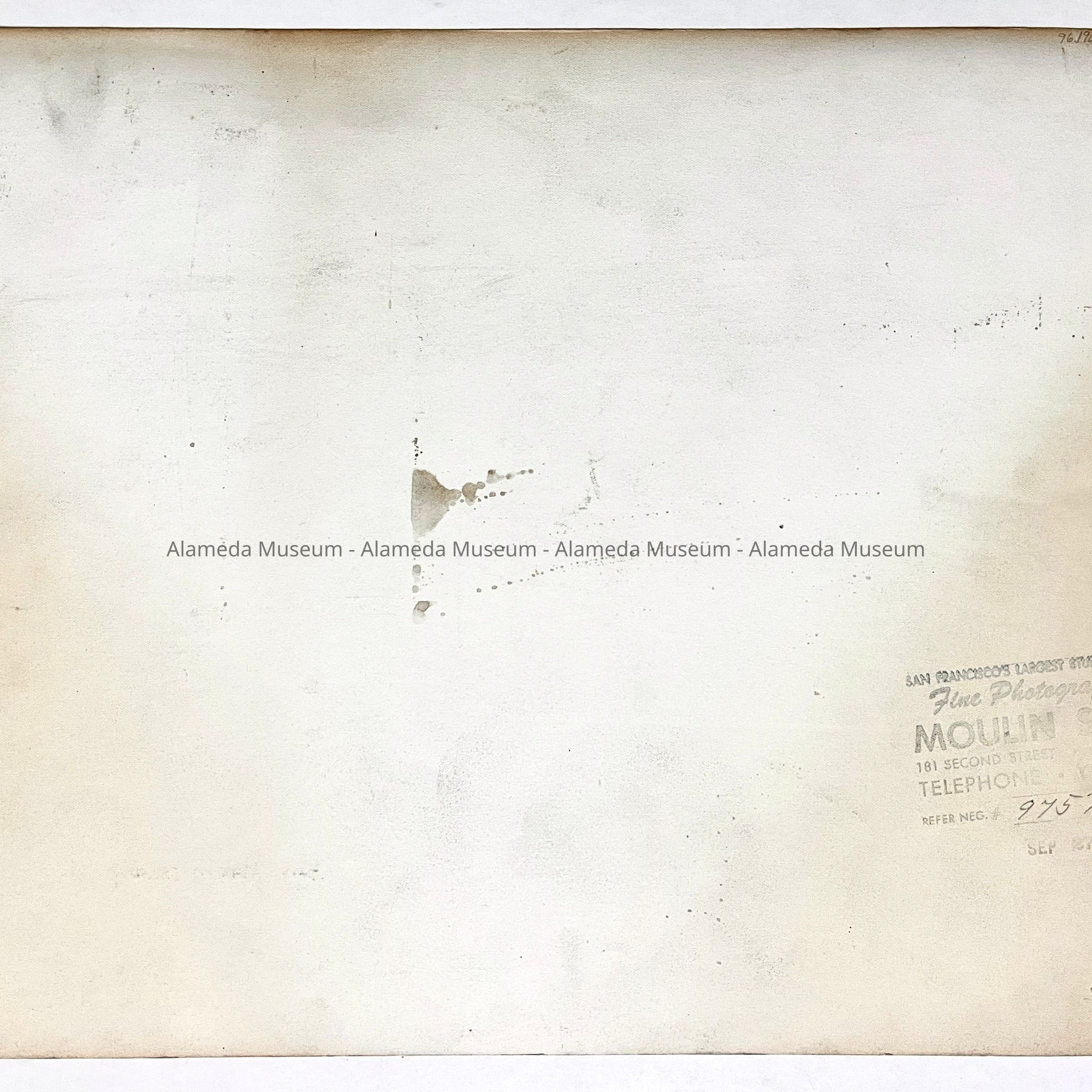 BLACK AND WHITE PHOTOGRAPH, MATTE FINISH. SIGNED ON REVERSE SIDE, "MOULIN STUDIOS, SAN FRANCISCO."