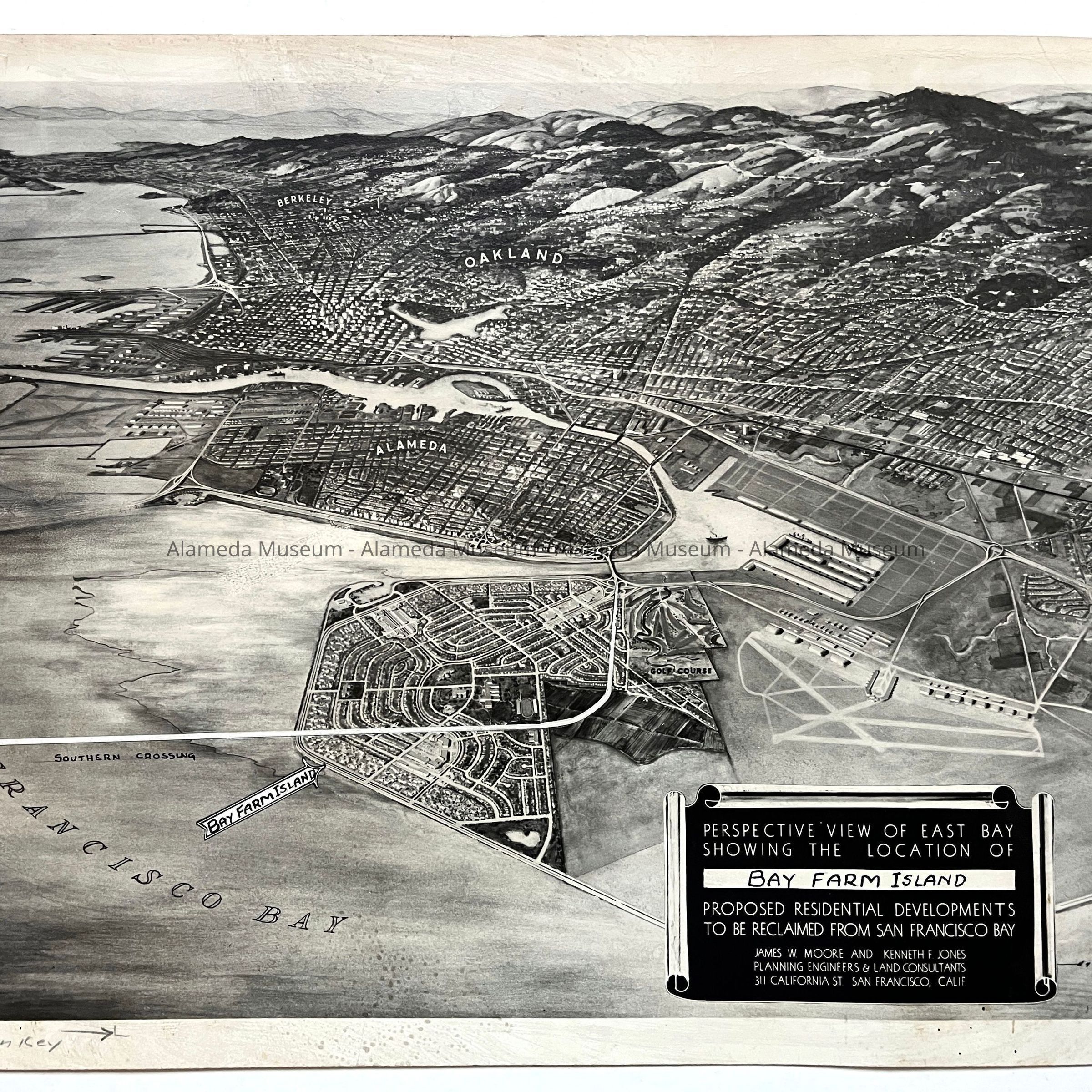 Photo of a drawing of a proposed residential Development for Bay Farm Island, 1950Entry/Object ID