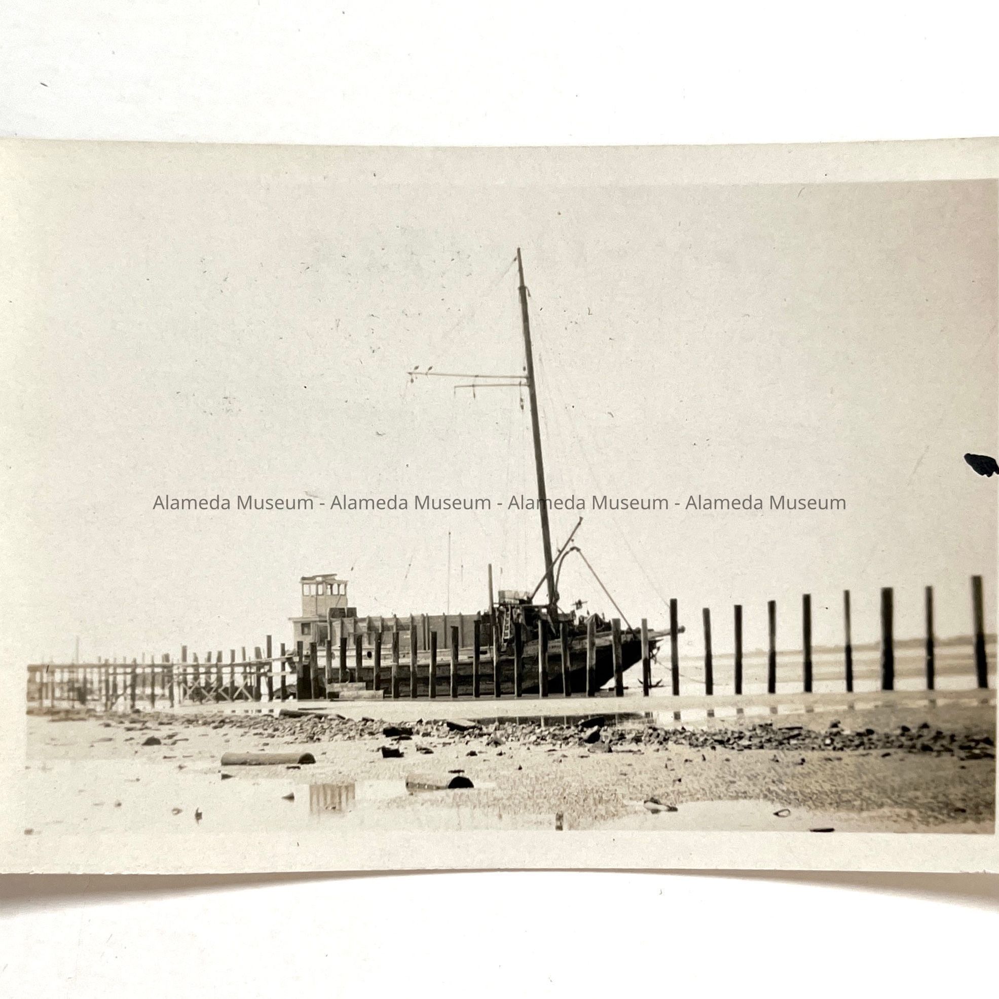 History of Object: Photo taken of a dredger at the foot of Regent Street, Alameda, dated July 12, 1929.