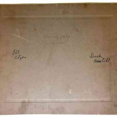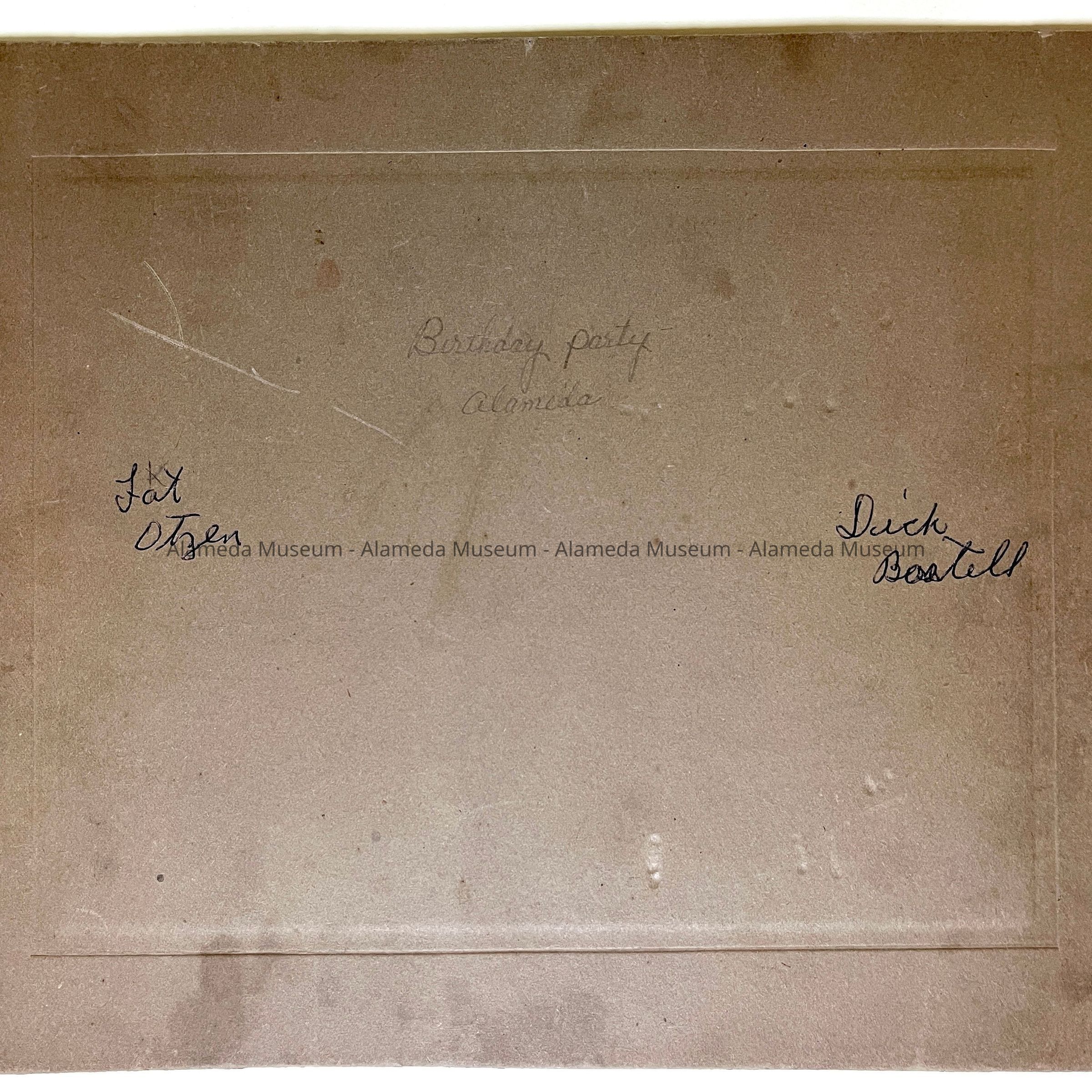 History of Object: Photo of a group of children sitting on the front steps of an unidentified home. Two children are identified, left- Dick Bartell (noted professional baseball player), and right- Fat Otzen. The occasion of the photo was a birthday party.