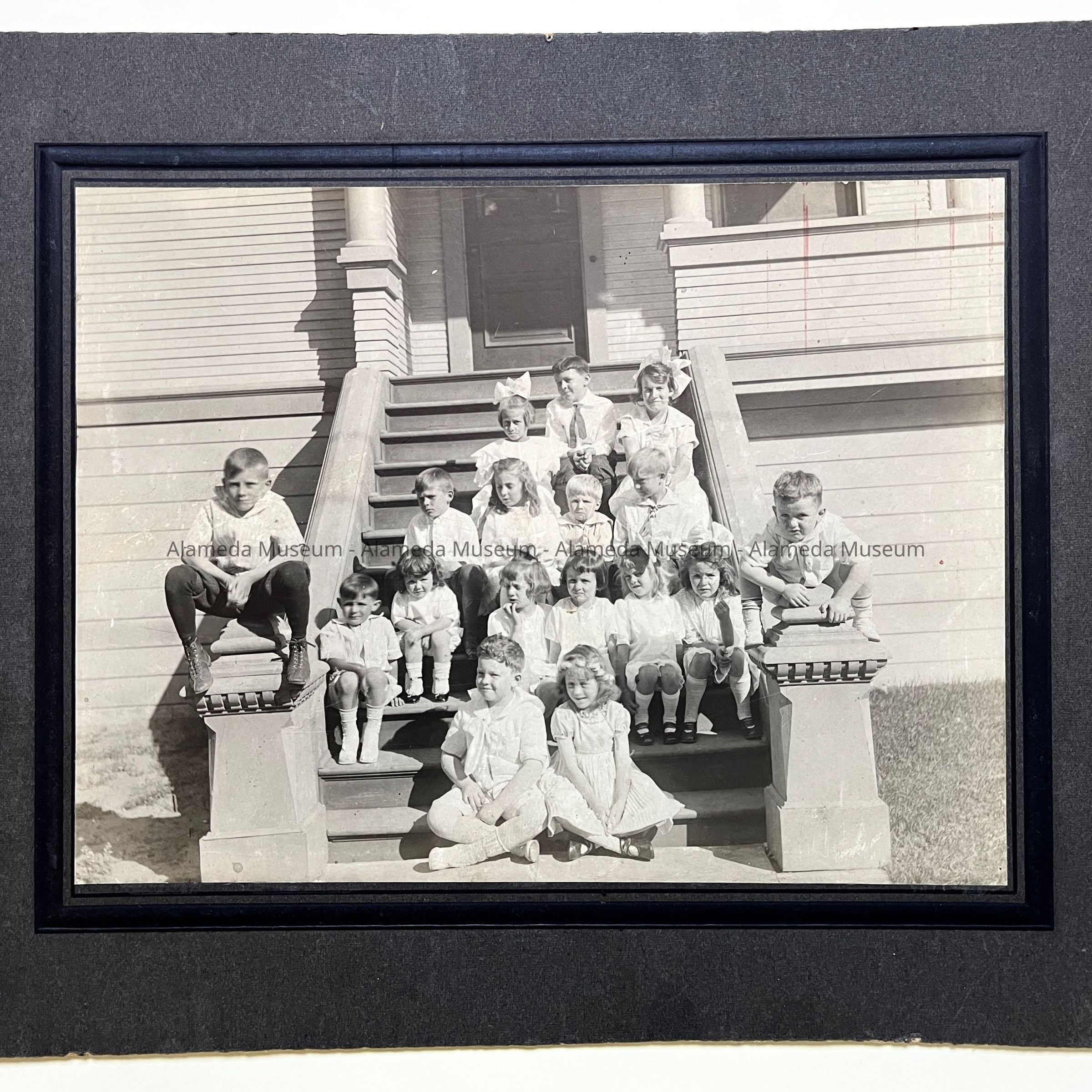 Photo of a group of children sitting on front steps, c. 1915Entry/Object ID