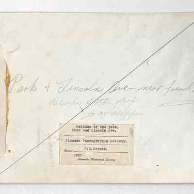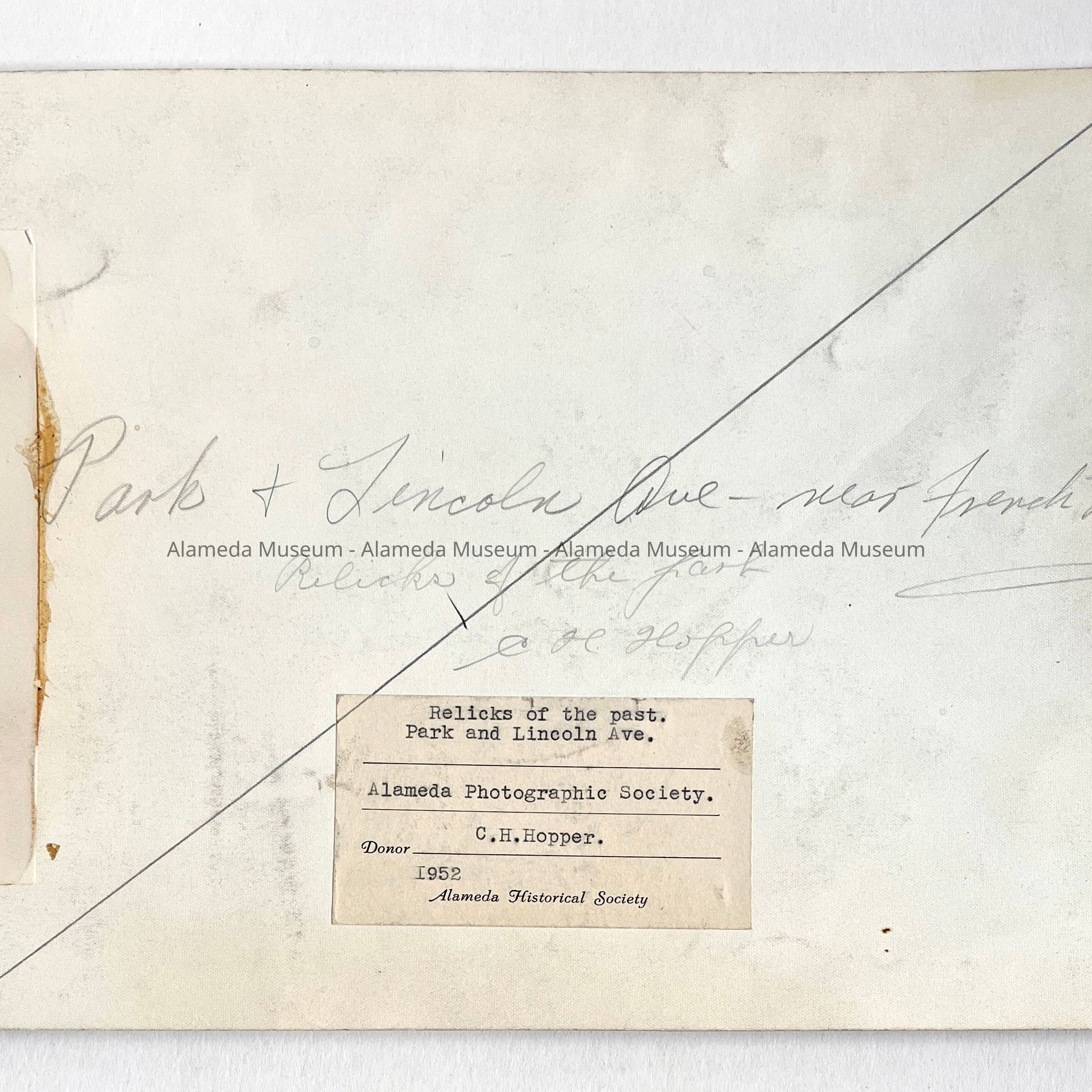 Description: Black/white photograph, unmounted. Photographer: C.H. Hopper of the Alameda Photographic Society. A residue of brownish glue is found along the bottom margin.