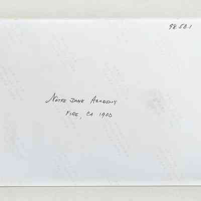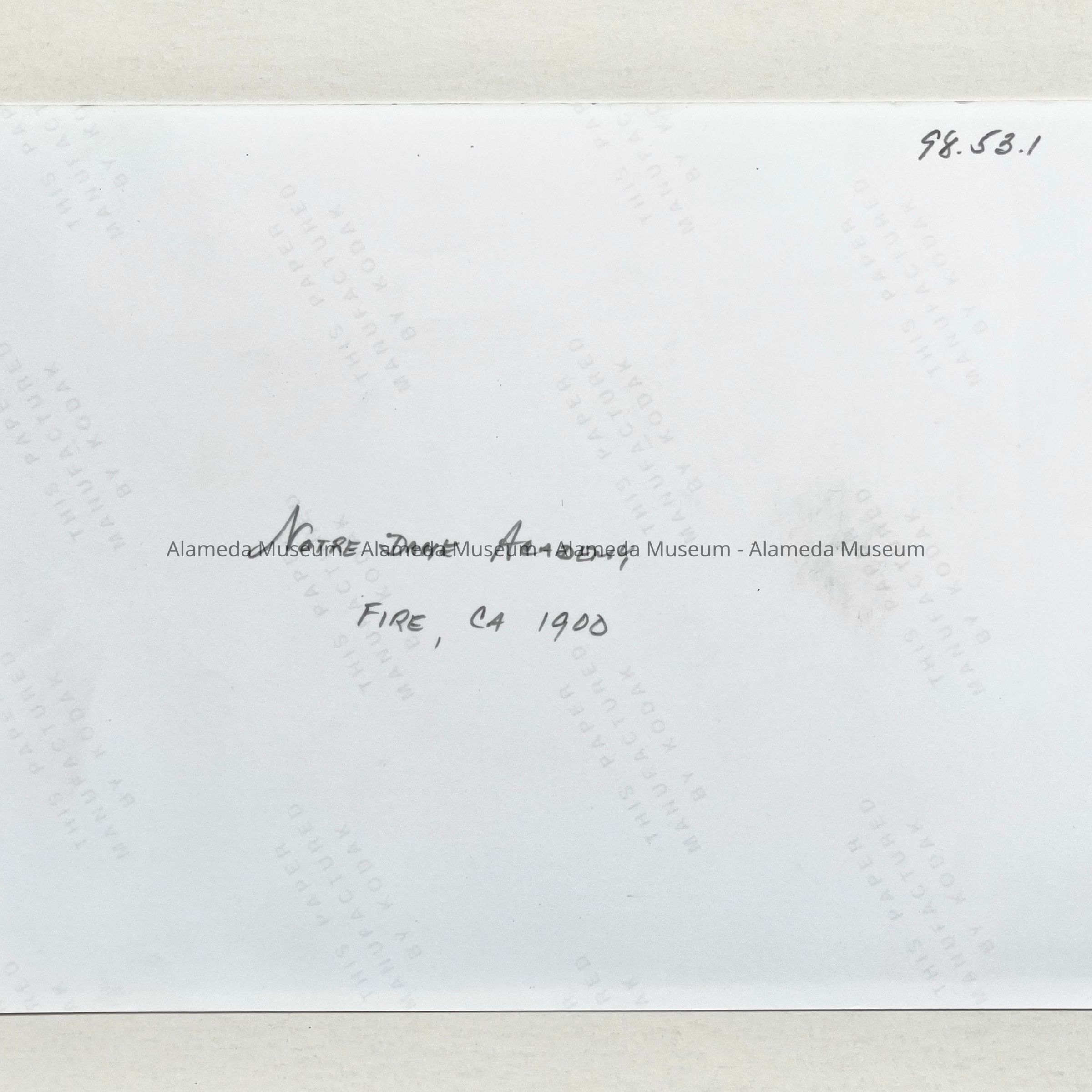 Photo of a horse-drawn firetruck in front of Notre Dame Academy, c. 1900Entry/Object ID