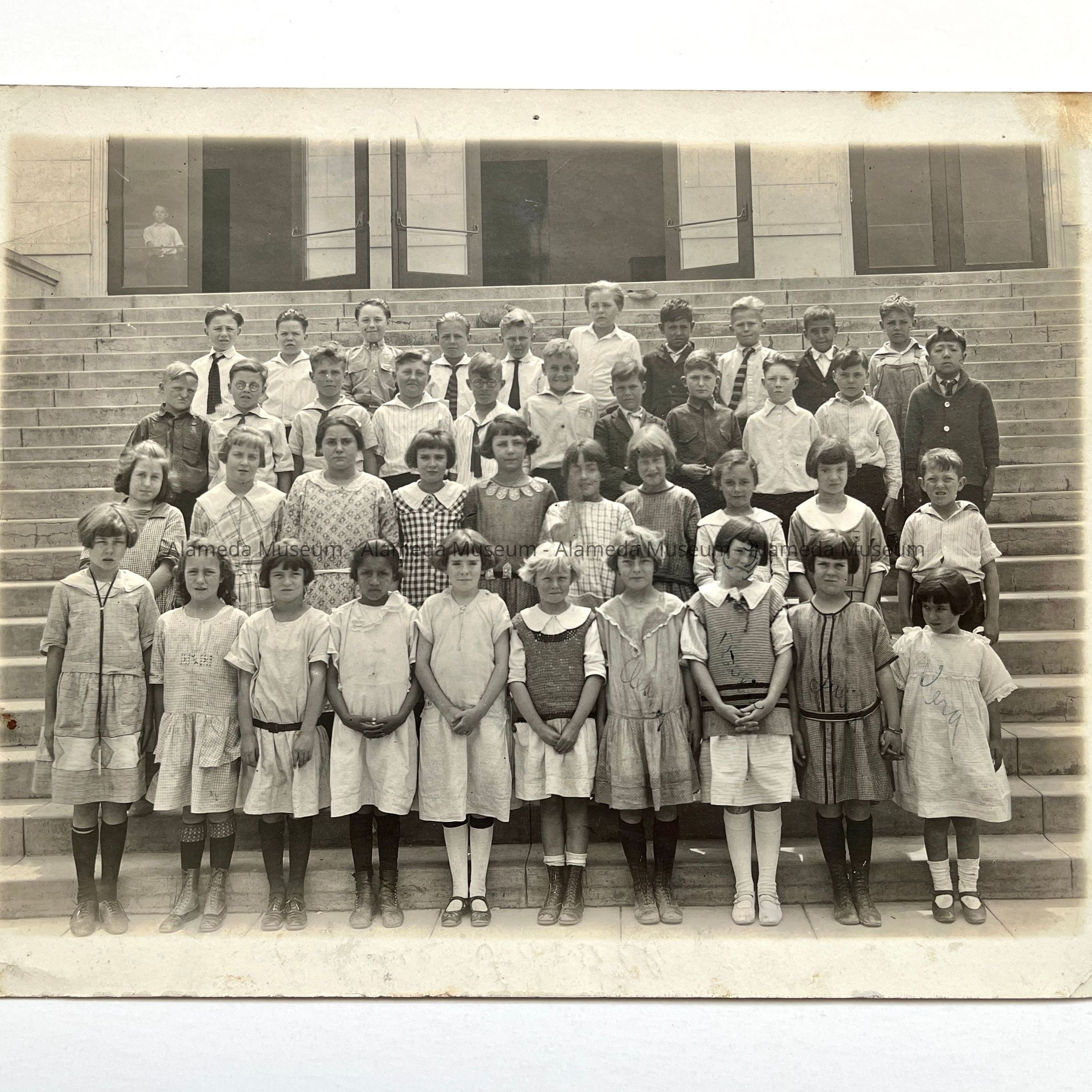HISTORY OF OBJECT: A PHOTO OF AN UNIDENTIFIED CLASS GRADE OF INDIVIDUALS AT LINCOLN SCHOOL, CIRCA 1920's. THE PHOTO WAS TAKEN BY S. DENTON, PHOTOGRAPHER, 2213 SANTA CLARA AVENUE, ALAMEDA.