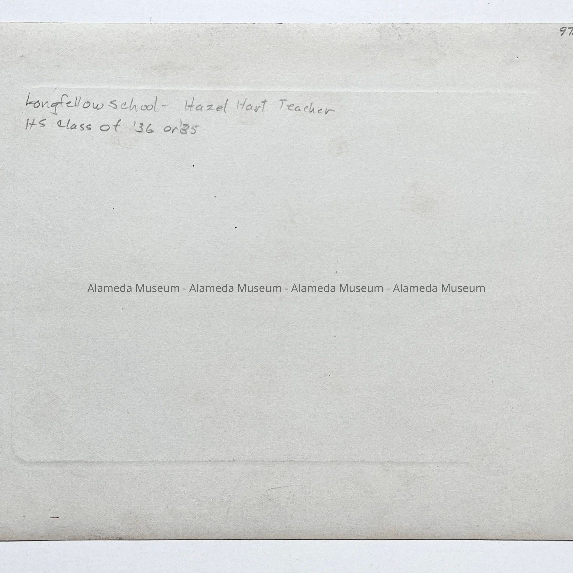 HISTORY OF OBJECT: PHOTOGRAPH OF AN UNIDENTIFIED CLASS, LONGFELLOW SCHOOL, ALAMEDA, CA; HAZEL HART, TEACHER.