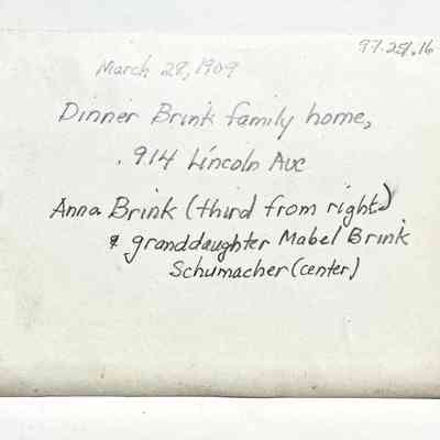 Photo of a lunch at the Brink family home, 914 Lincoln Ave, 1909Entry/Object ID