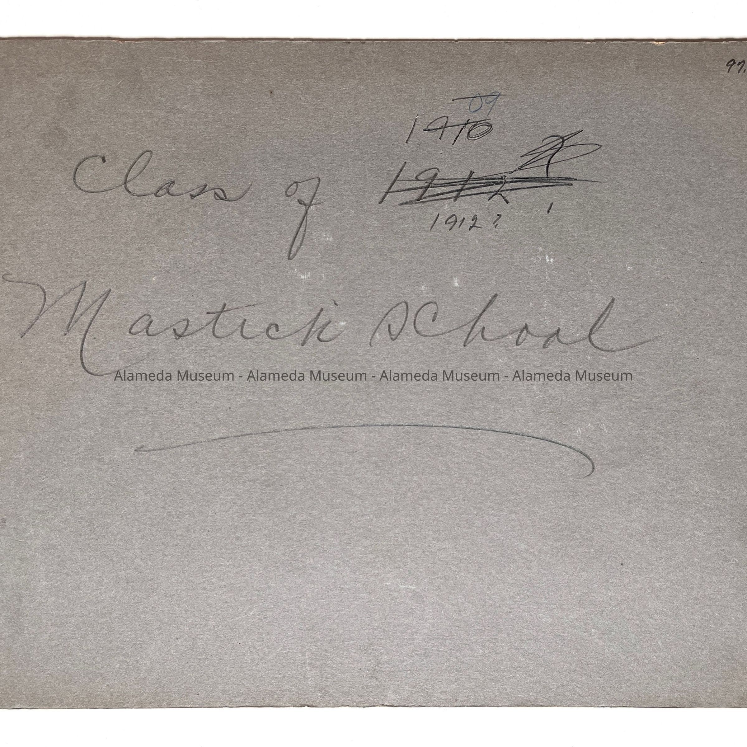 History of Object: Mastick School Class, probably of 1912, posed outdoors. The class members are unidentified.