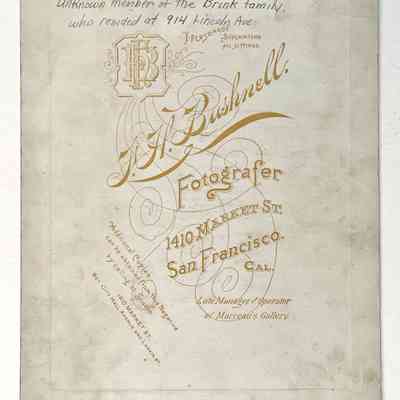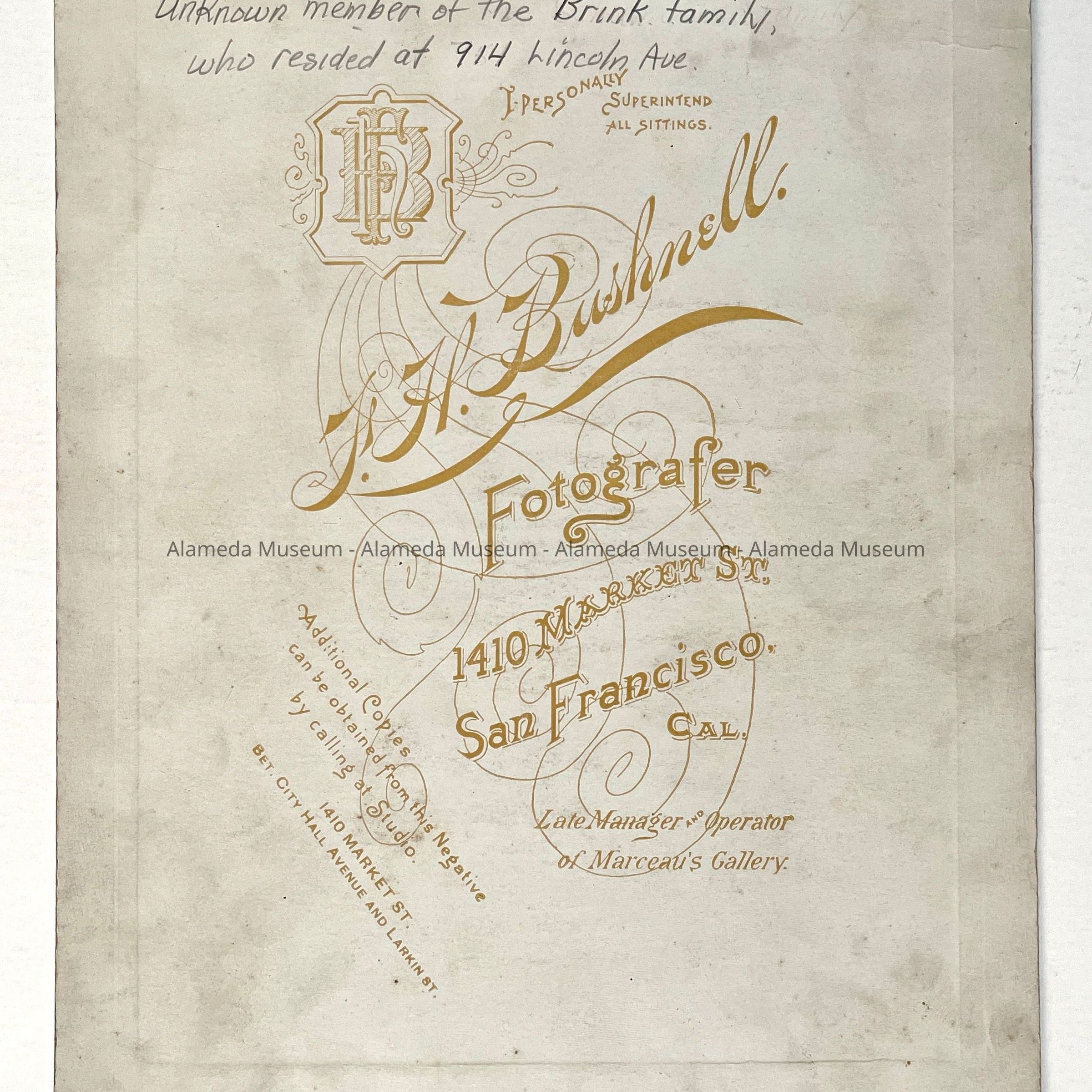 PHOTOGRAPH OF AN UNKNOWN MEMBER OF THE BRINK FAMILY WHO RESIDED AT 914 LINCOLN AVENUE IN ALAMEDA.