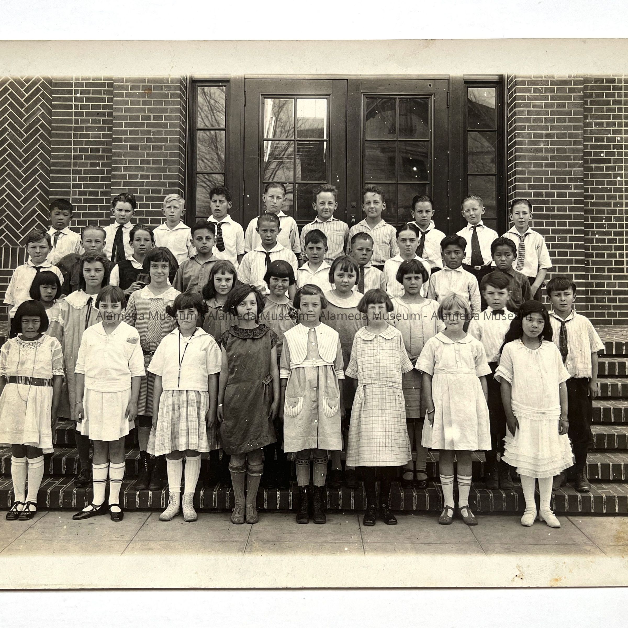 Photo of a Porter School class at the entrance door, mid-1920sEntry/Object ID