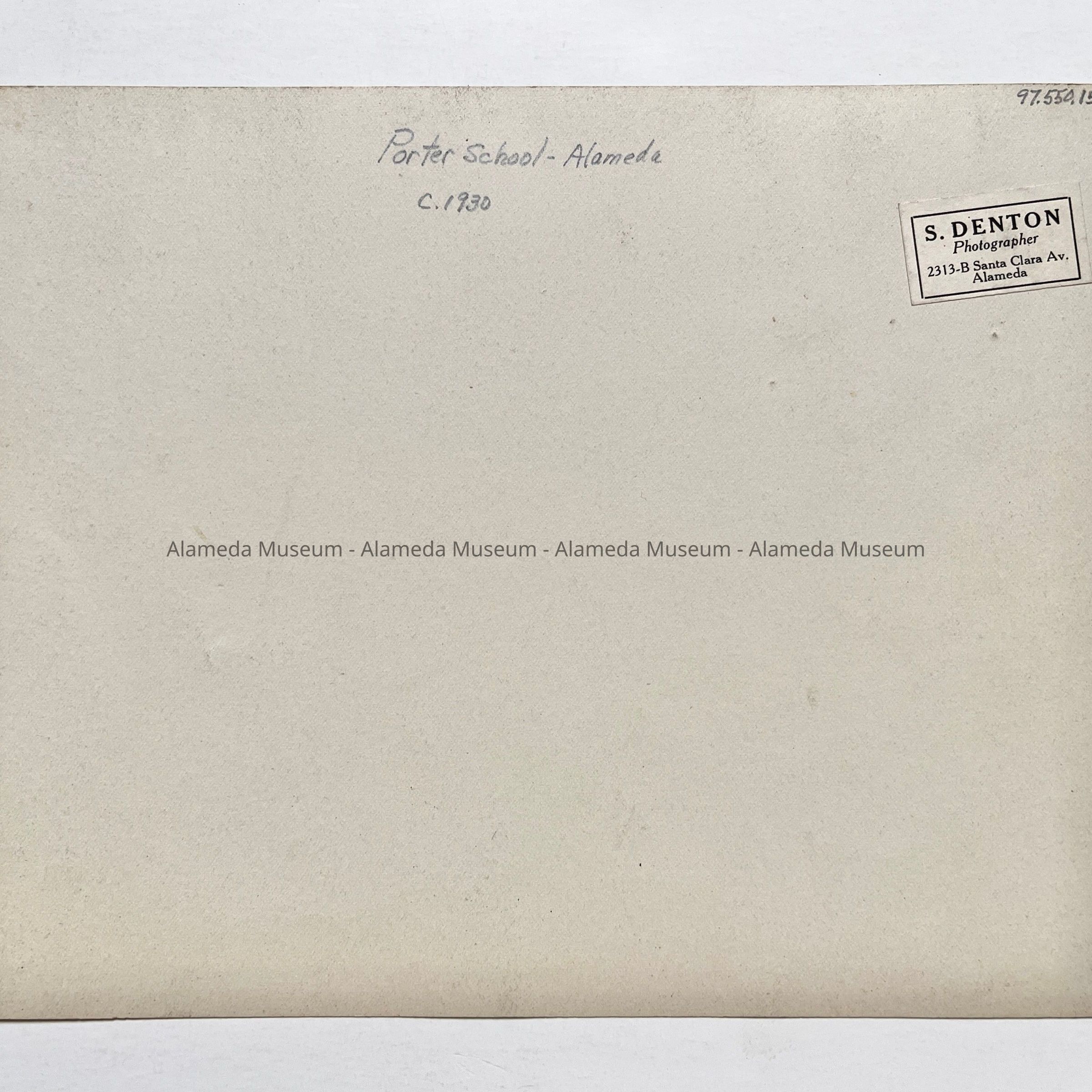 BLACK-AND-WHITE PHOTOGRAPH, WITH CAPTION ON THE REVERSE SIDE, "S DENTON, PHOTOGRAPHER, 2313-B SANTA CLARA AVENUE, ALAMEDA."