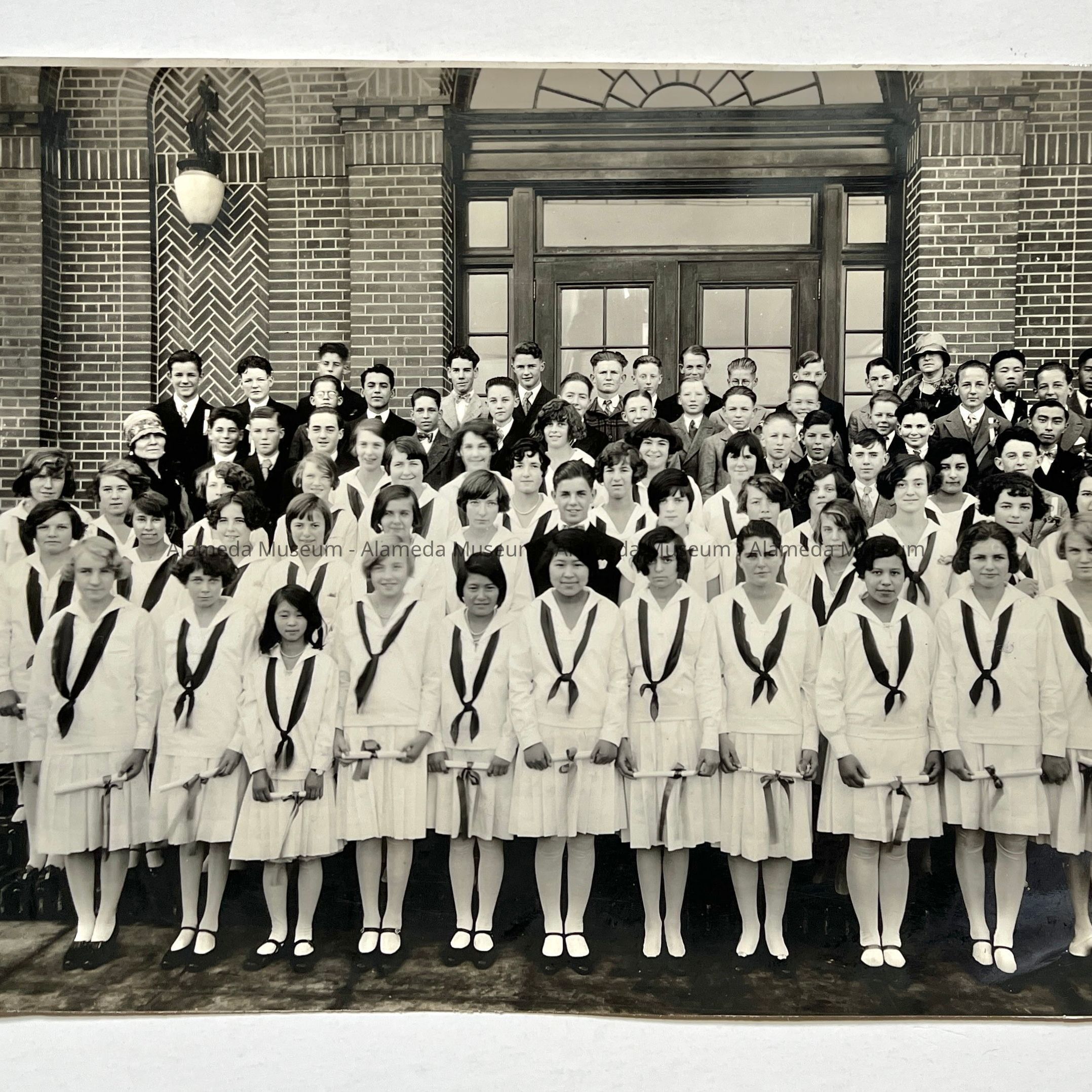 Photo of a Porter School Graduating Class before main entrance, c. 1930Entry/Object ID
