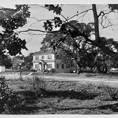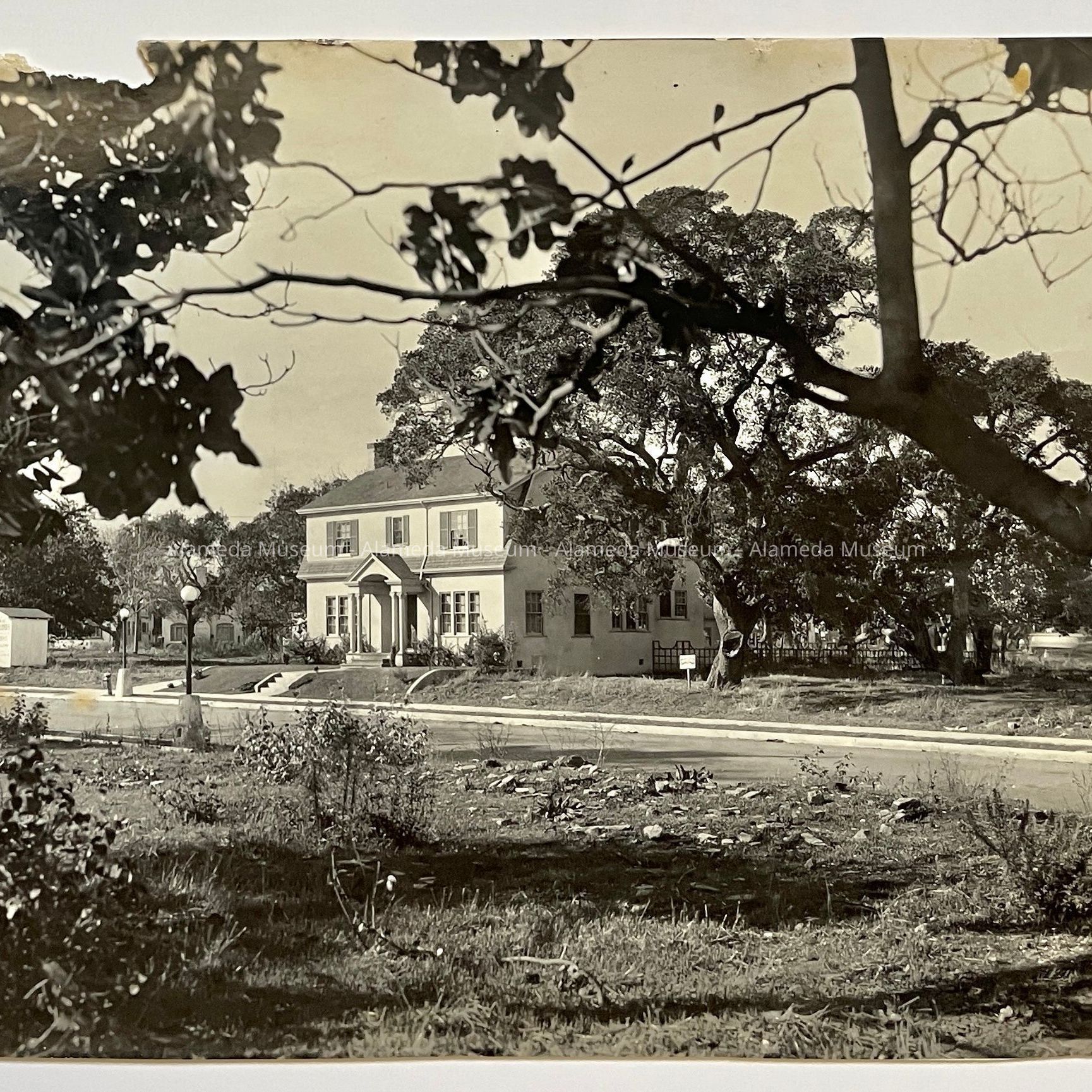 Photo of a two-story colonial residence on Gibbons Drive, and the tract office, 1927Entry/Object ID