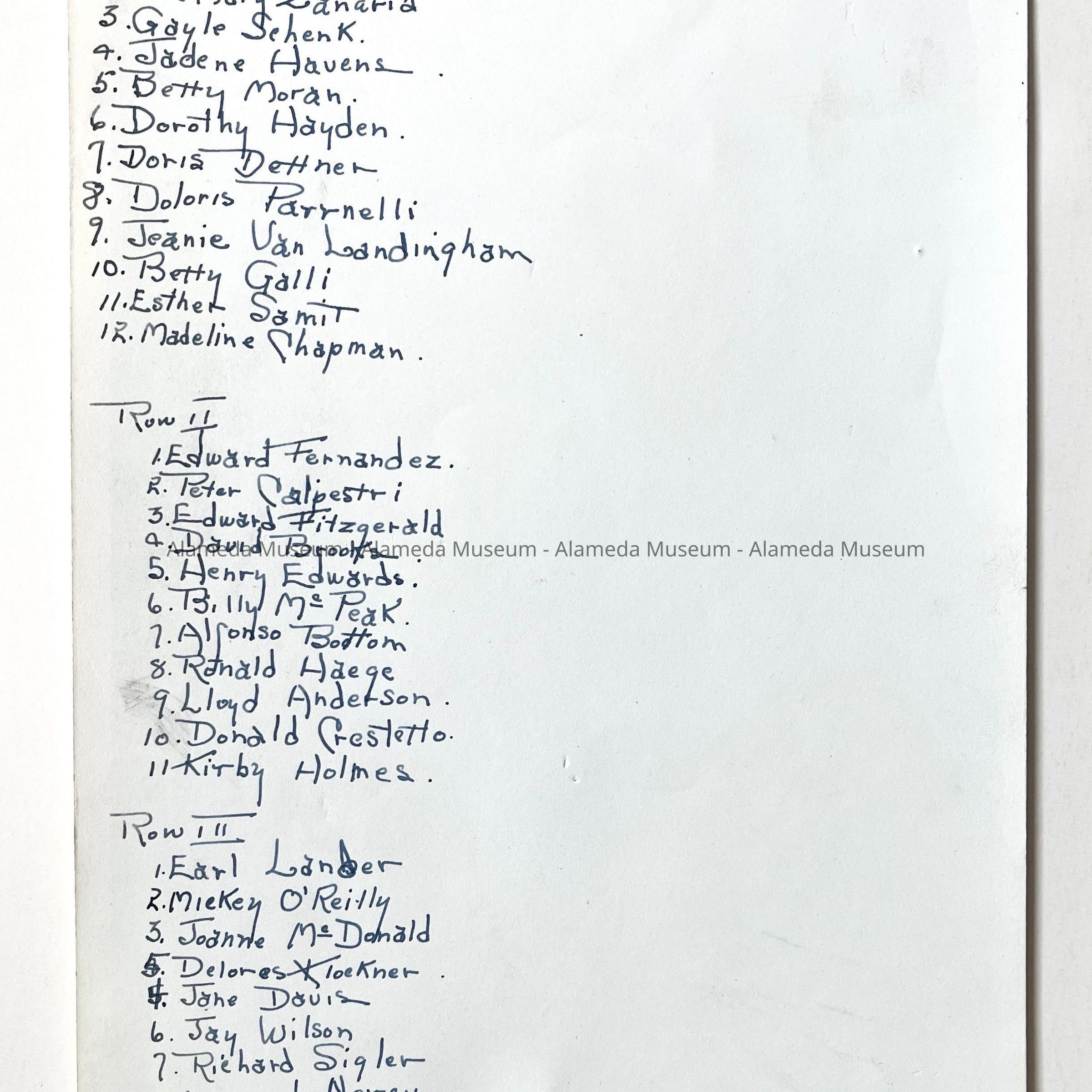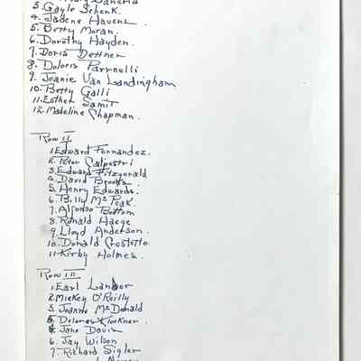 PHOTOGRAPH OF AN UNIDENTIFIED GRADE- LEVEL CLASS, WASHINGTON SCHOOL, SPRING 1944. ON THE REVERSE SIDE IS A LISTING OF NAMES OF STUDENTS PICTURED.