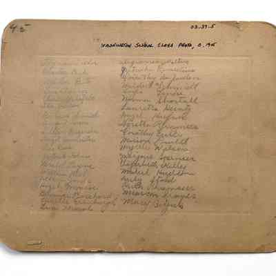 History of Object: Washington School class assembled on the front steps. The names of the students are pencilled on the verso.