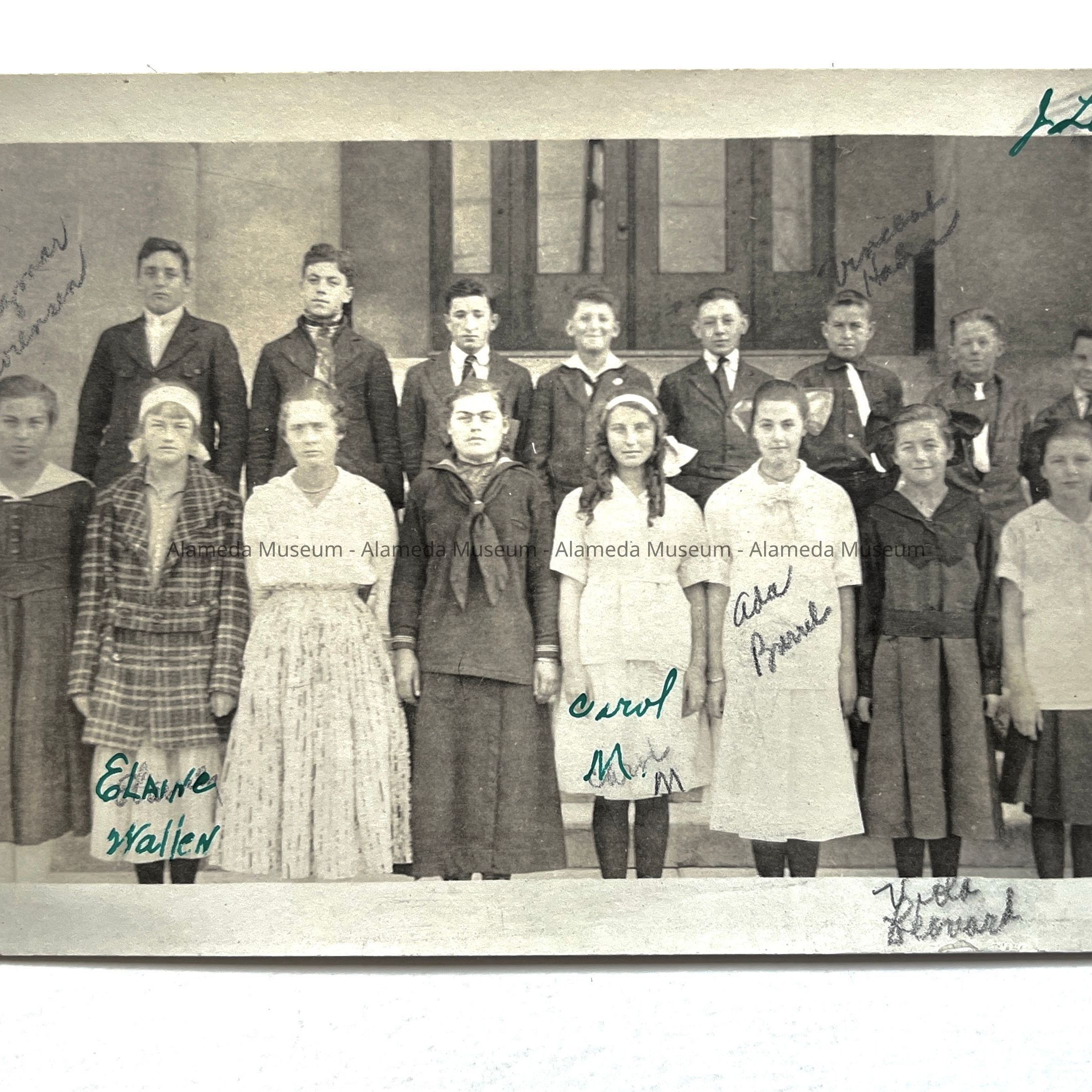 Photo of a Washington School class posed on the front steps, c. 1918Entry/Object ID