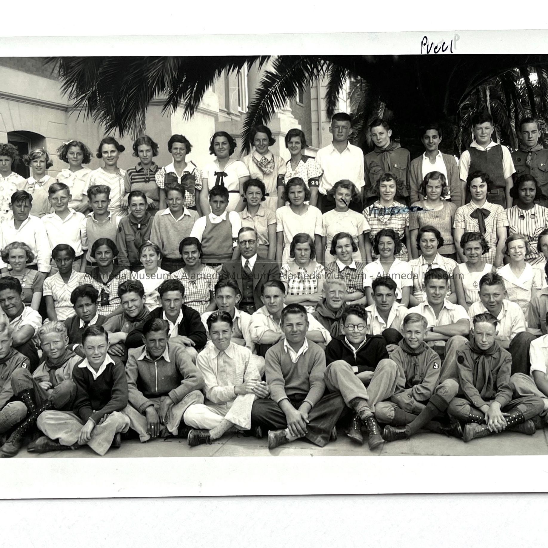 History of Object: An unidentified Washington School graduation class posing in front of the school. Only three students are identified.